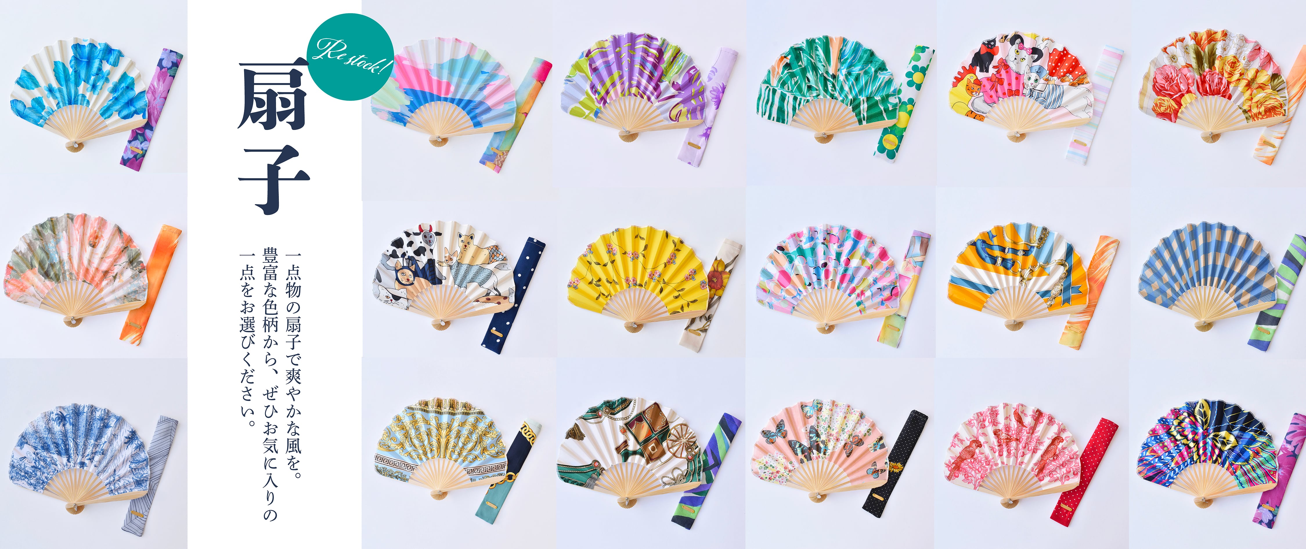 一点ものの扇子から爽やかな風。ぜひ皆様のお好きな色柄を見つけてください。