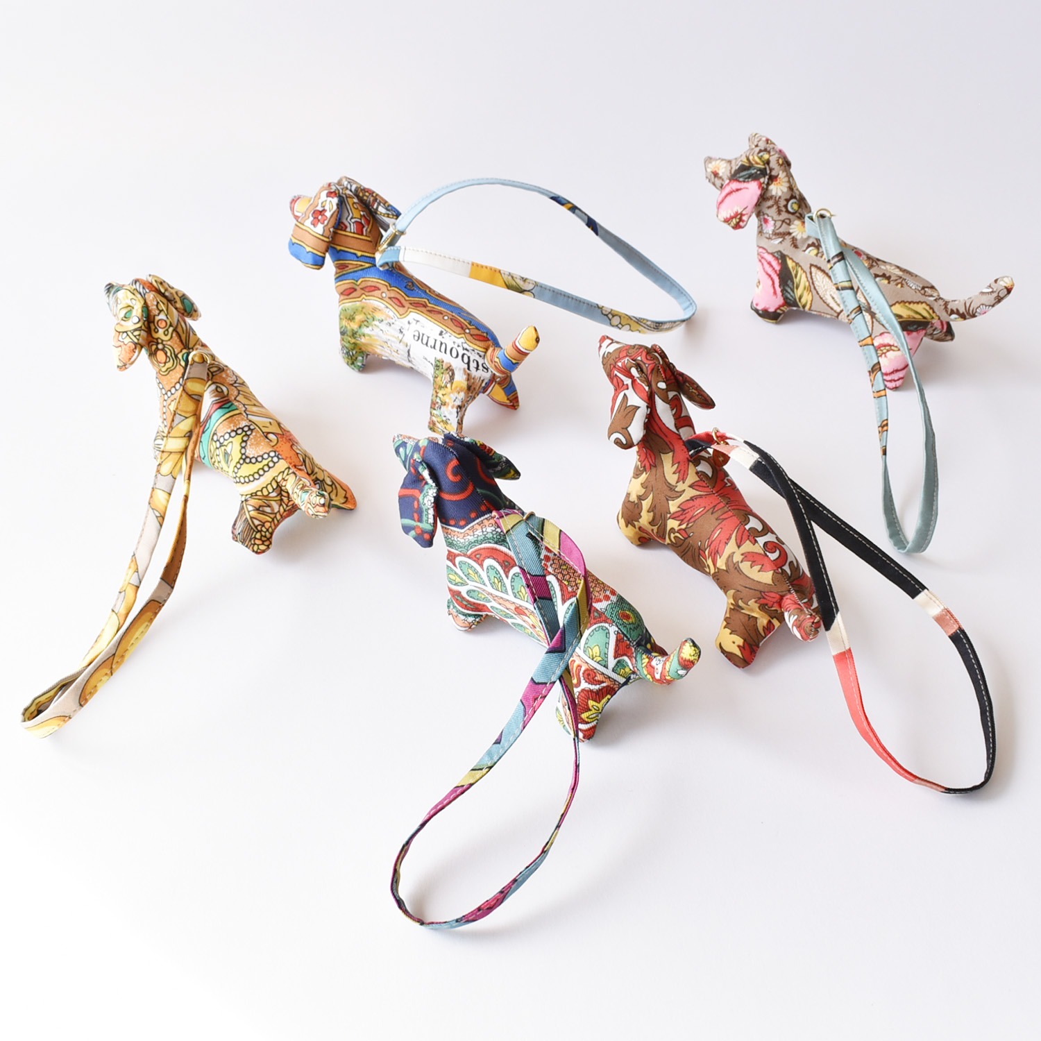 可愛らしいモチーフながら、スカーフ素材でお作りし大人可愛いチャームに仕上がりました。