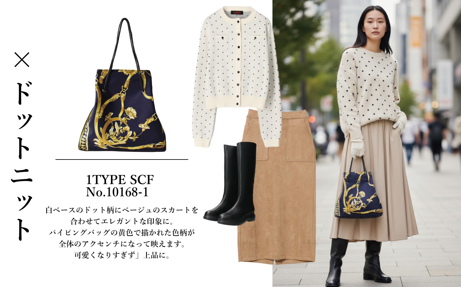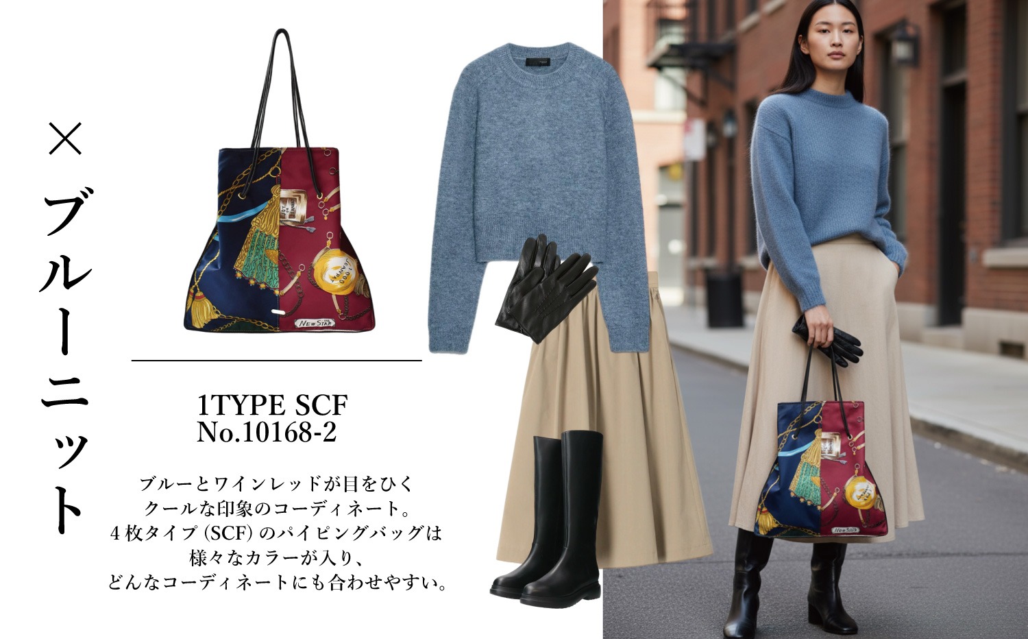 ニットの着回しが楽しい季節!定番のPIPING BAGを使ってコーディネートをもっと楽しく。
