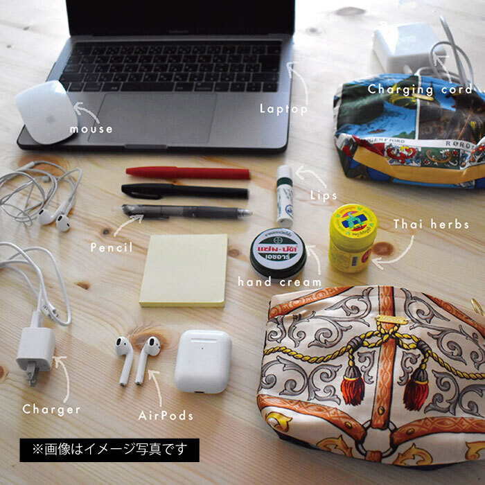 ▶︎Mサイズ:コード類や筆記用具などを入れるのに便利なサイズ感。