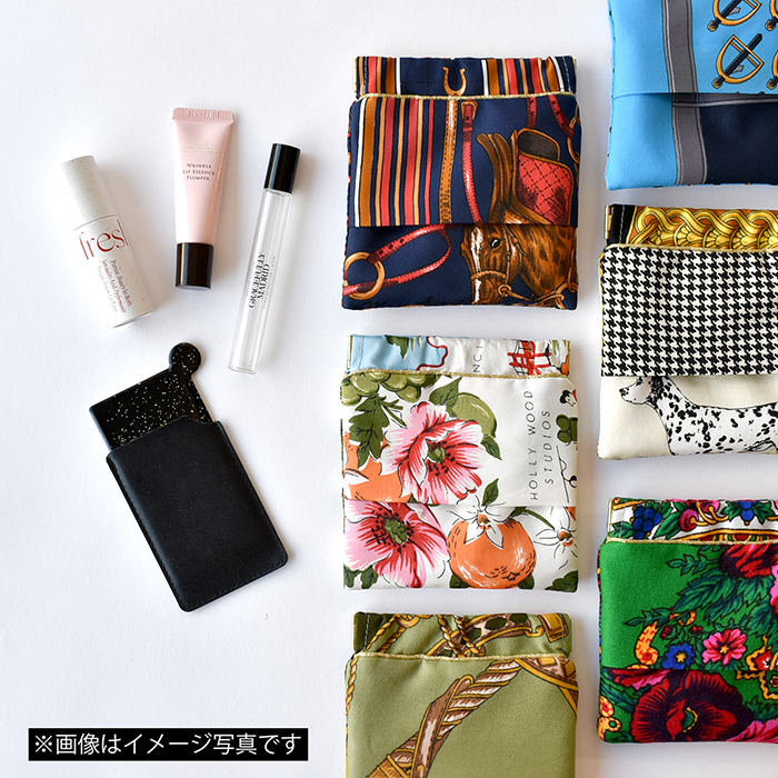 スカーフをリメイクしたティッシュポーチ。