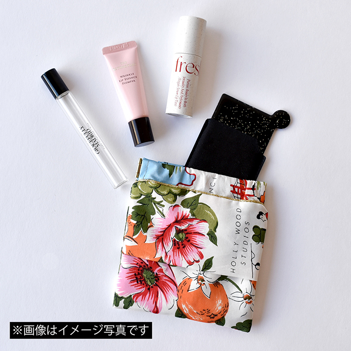 リップなどの小物が収納可能なティッシュポーチ。