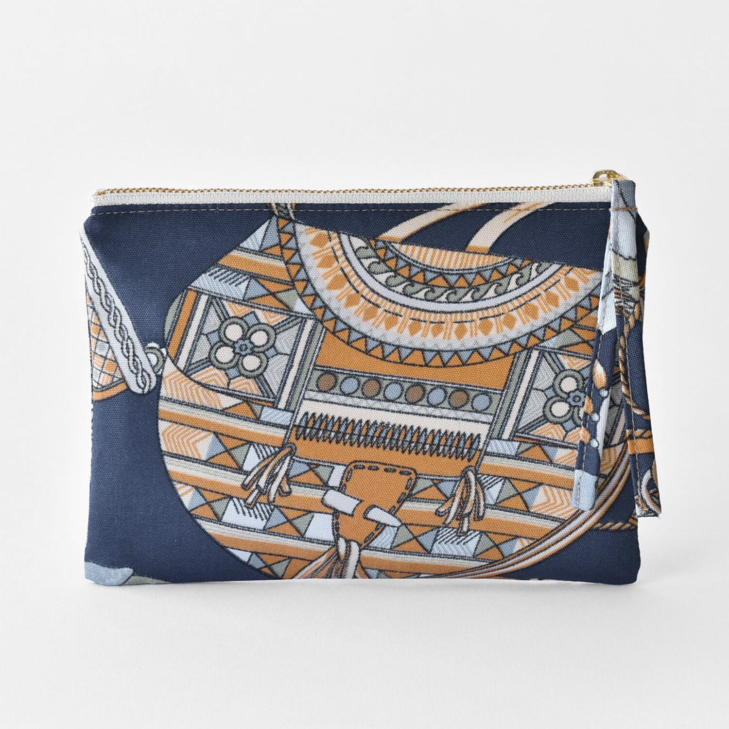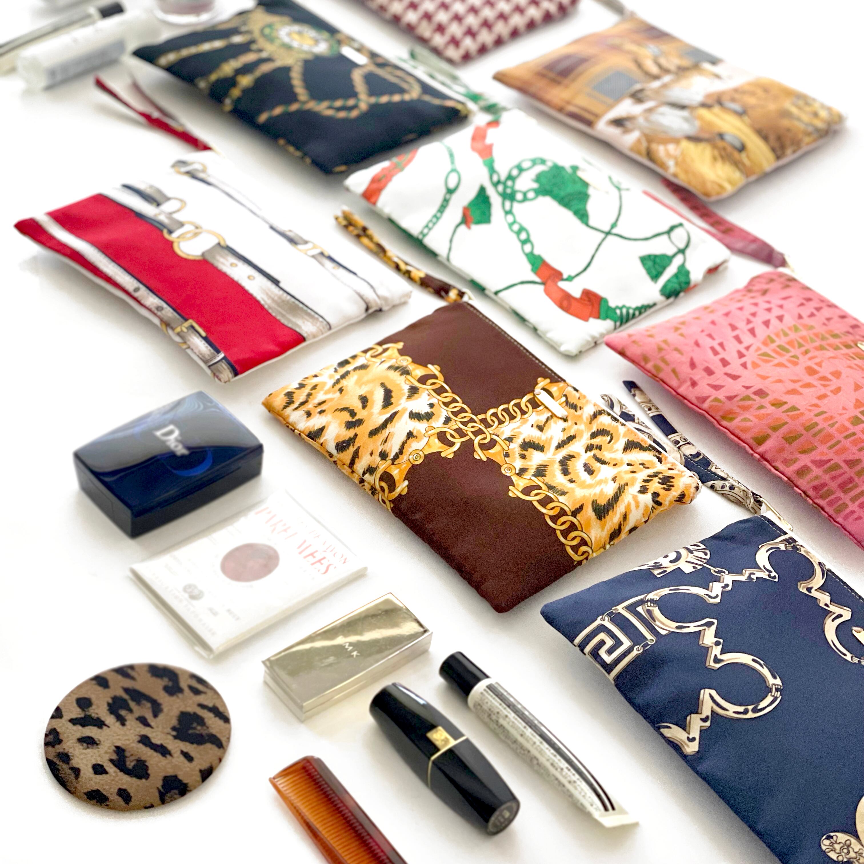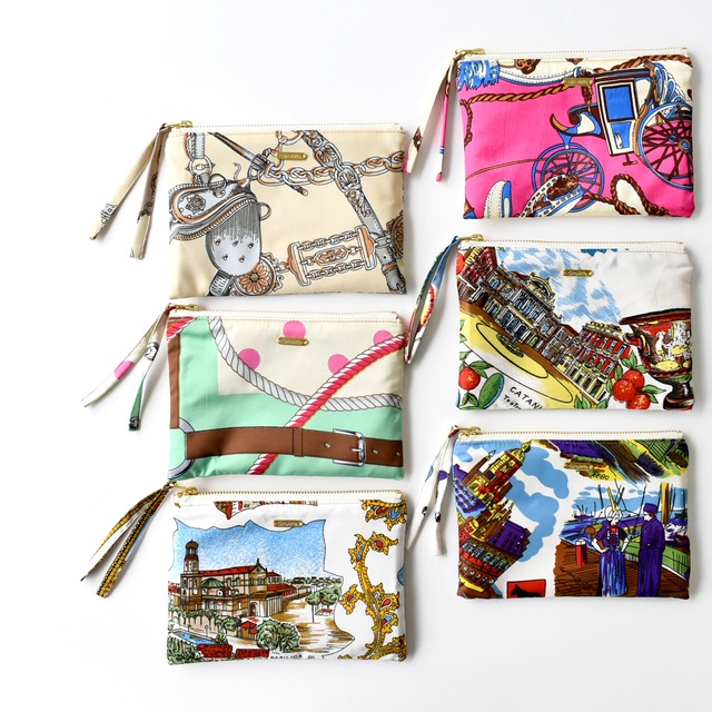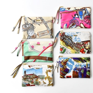 ヴィンテージスカーフをリメイクした定番のフラット形ポーチ。