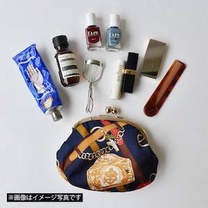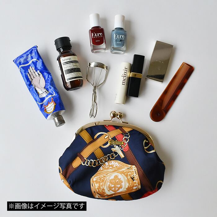 ミラーやビューラー、ハンドクリームなど、大きめのアイテムもしっかり入るがま口ポーチ。