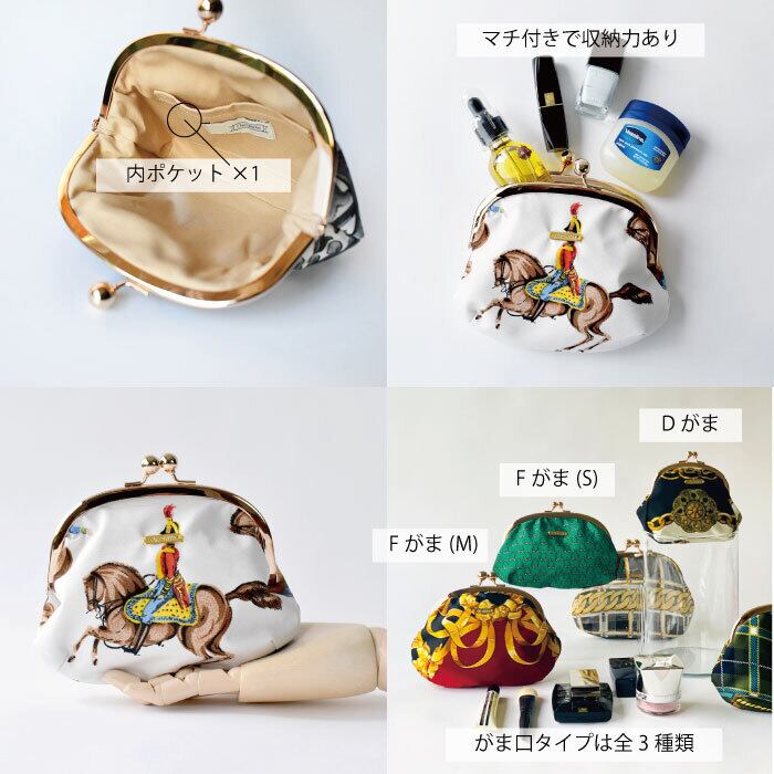 アイテムがしっかり入る、大きめがま口ポーチ。