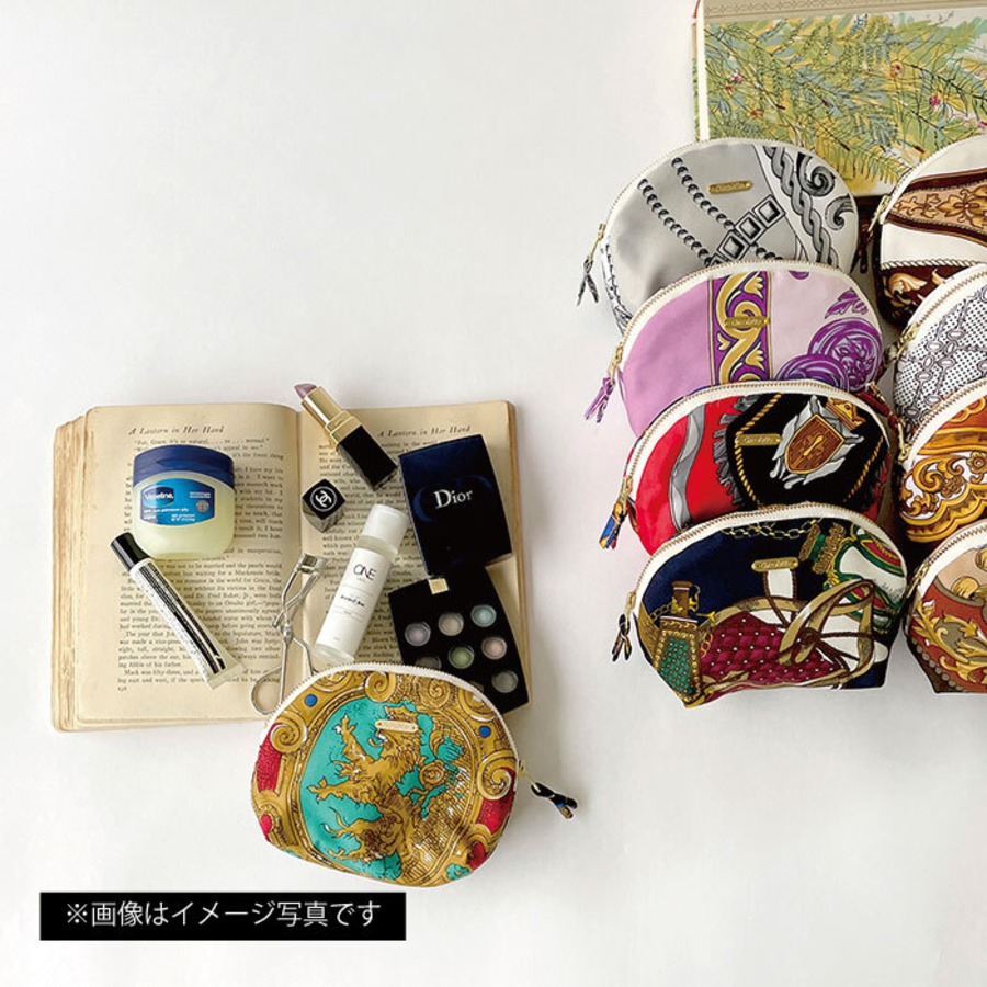 ファスナーがラウンド型に開く人気のポーチはアイテムの出し入れがしやすく、コンパクトでバッグの中でもかさばりません。