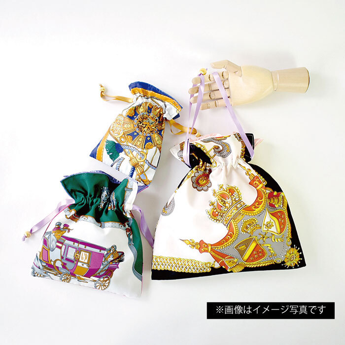 3サイズ展開のスカーフ巾着。