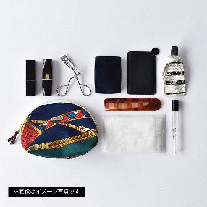 ファスナーがラウンド型に開く人気のポーチはアイテムの出し入れがしやすく、コンパクトでバッグの中でもかさばりません。