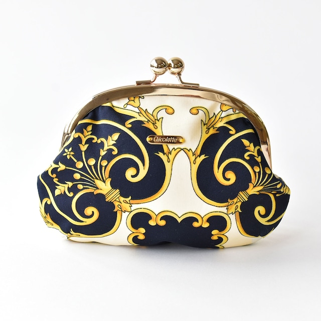 ヴィンテージスカーフをリメイクした、がま口ポーチ。
