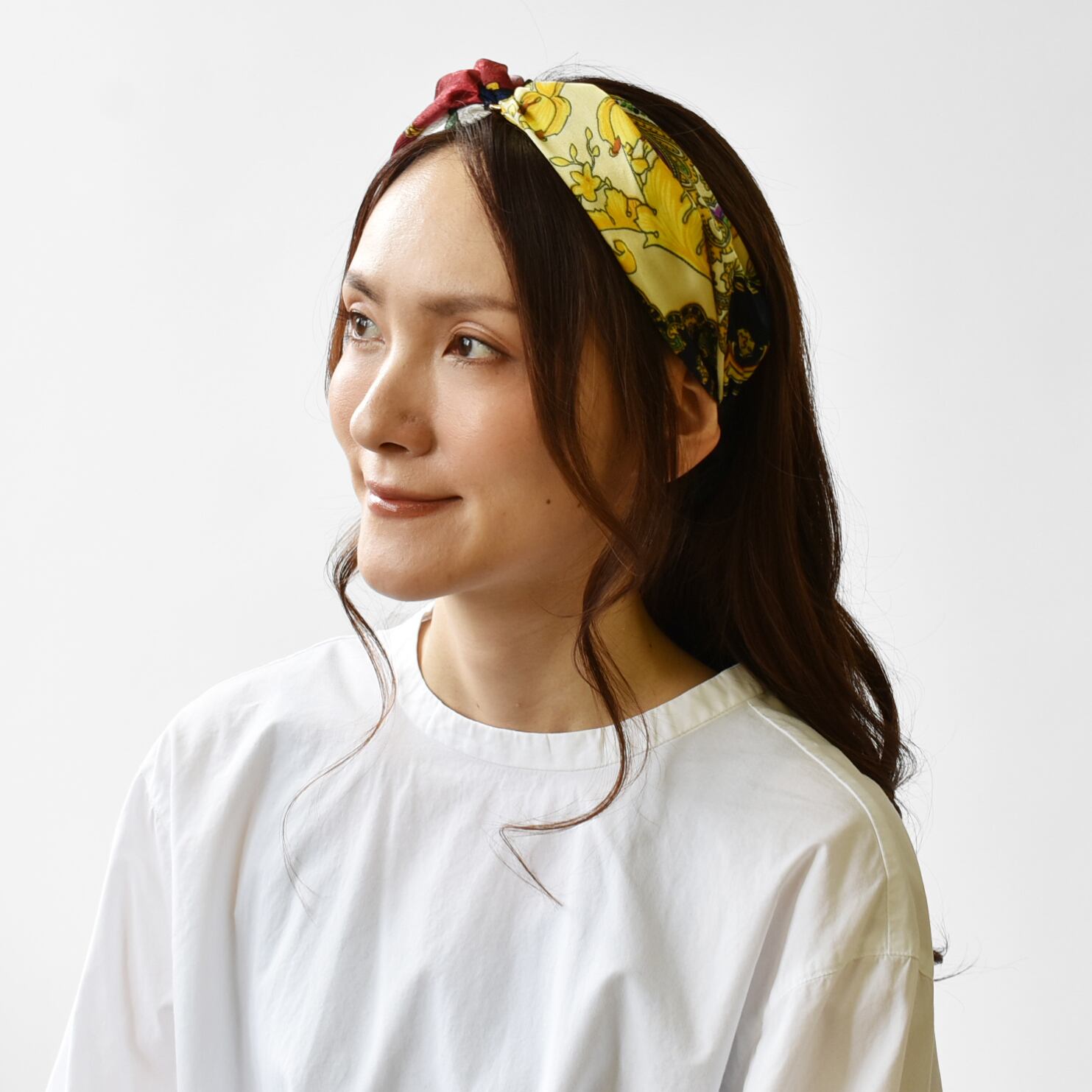 左右で色柄の違うスカーフがリメイクされています。