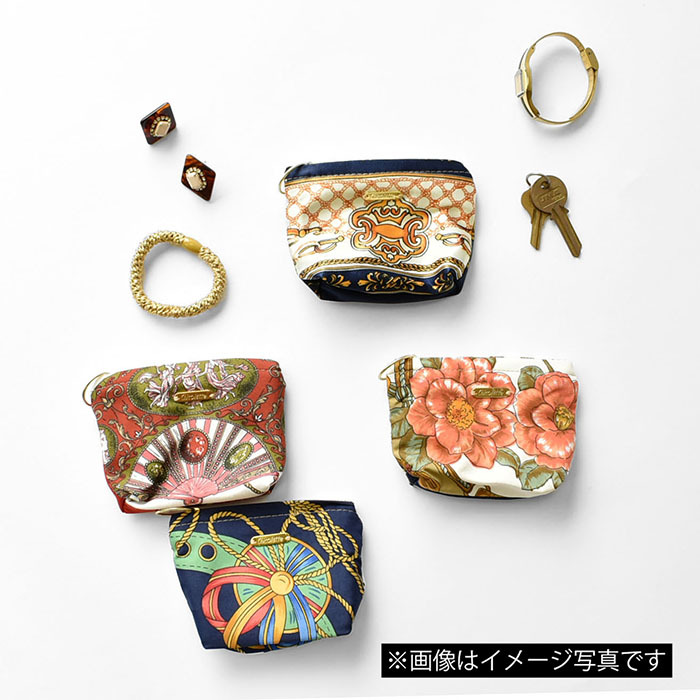 スカーフをリメイクした、ミニポーチ。