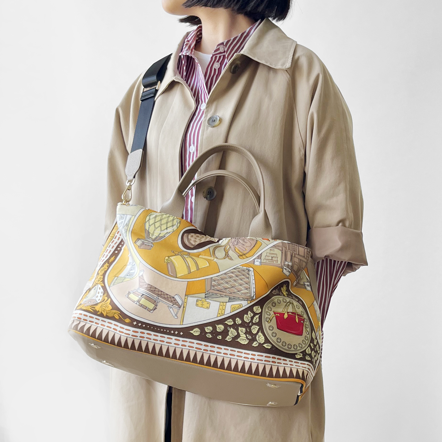 サイズ:たて26cm よこ50cm 底38cm マチ15cm 持ち手38cm / ショルダー約80〜140cm