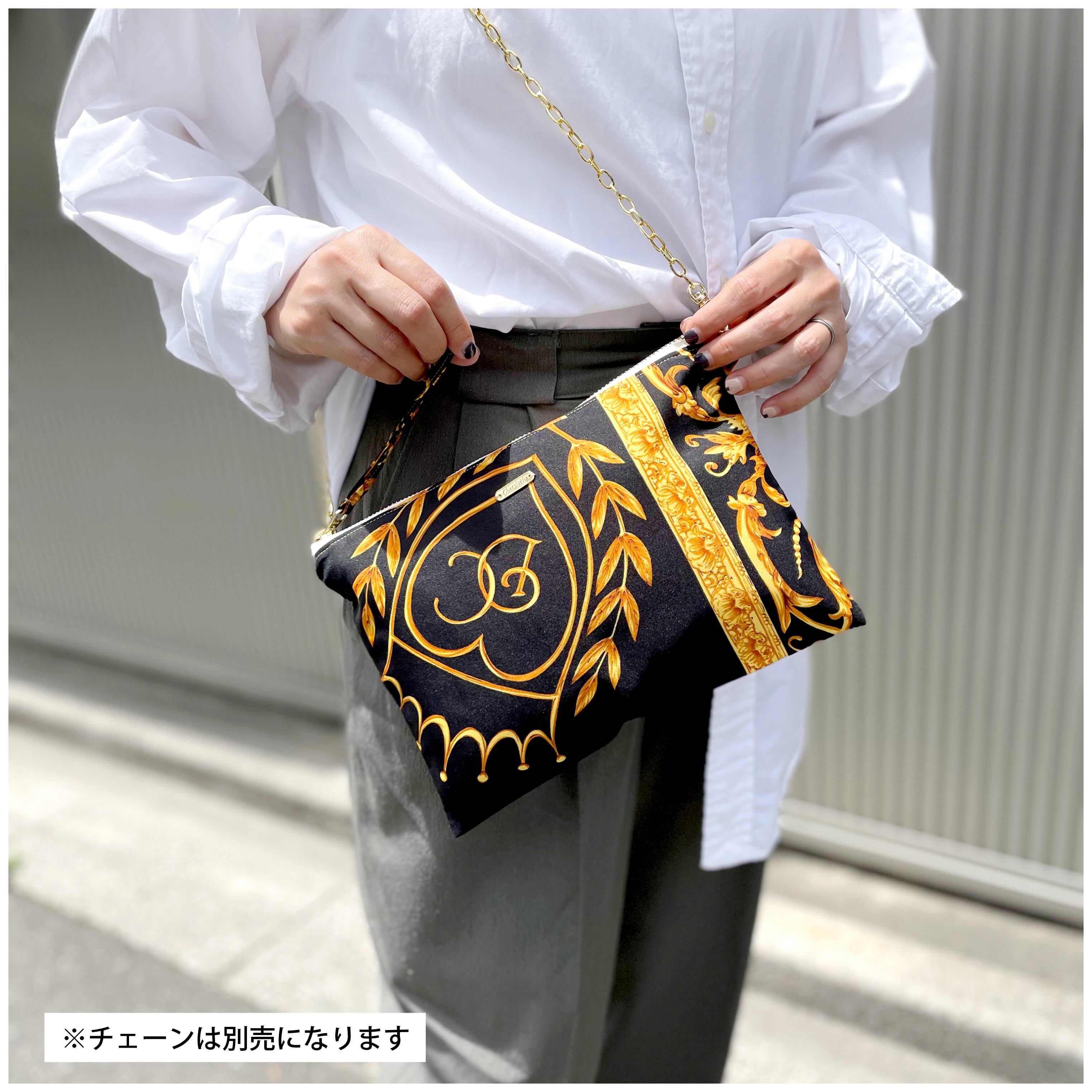 ヴィンテージスカーフをリメイクした定番のフラット形ポーチ。