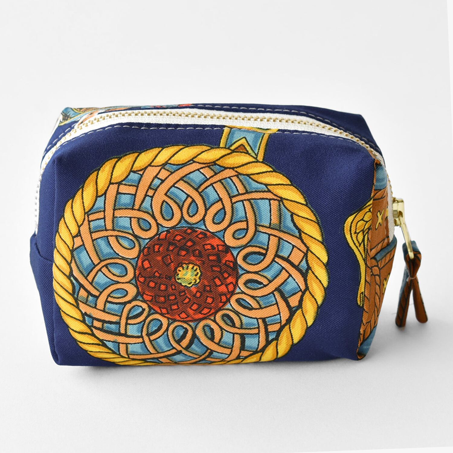 ヴィンテージスカーフを使用した俵型ポーチ。