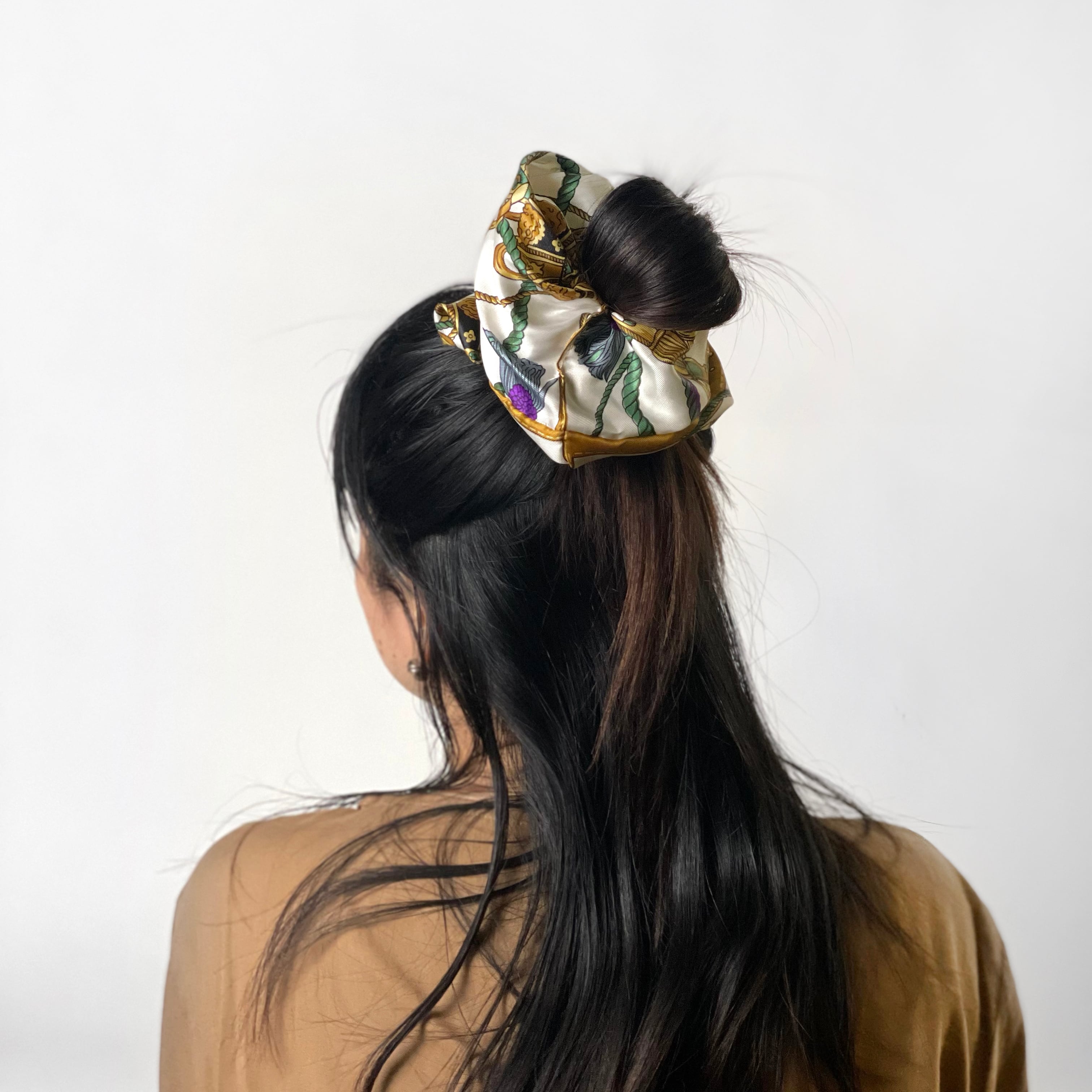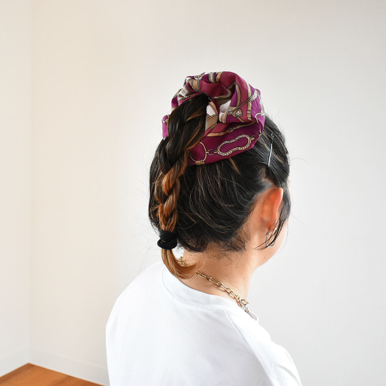 シュシュは結目の根元に巻きつけるだけでとっても簡単◎