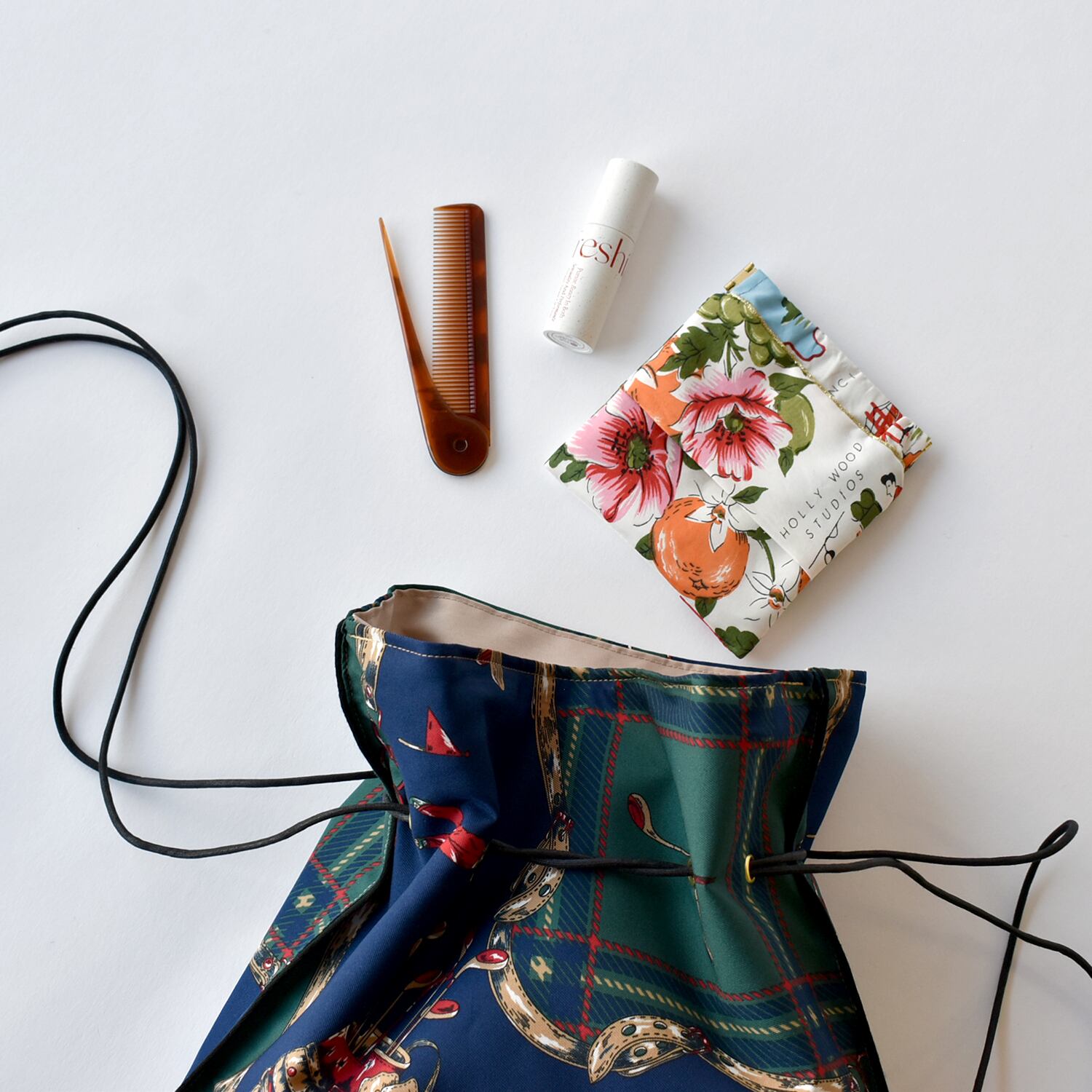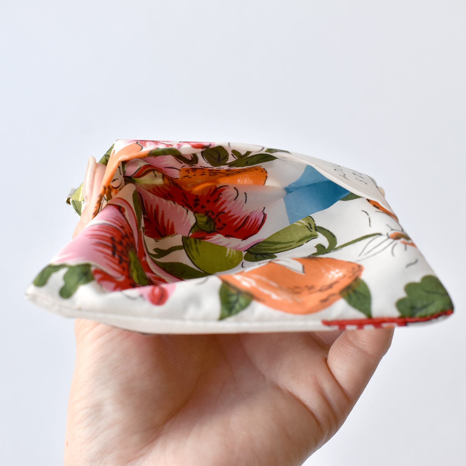 ヴィンテージスカーフをリメイクしたティッシュポーチ。