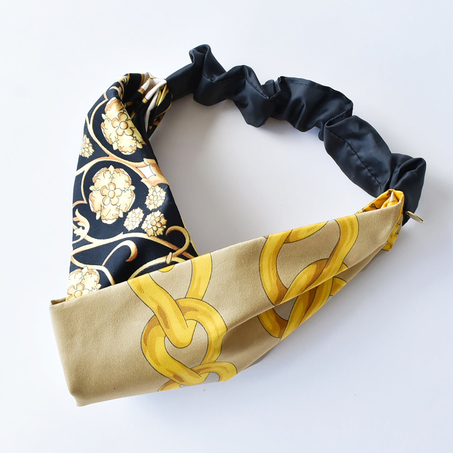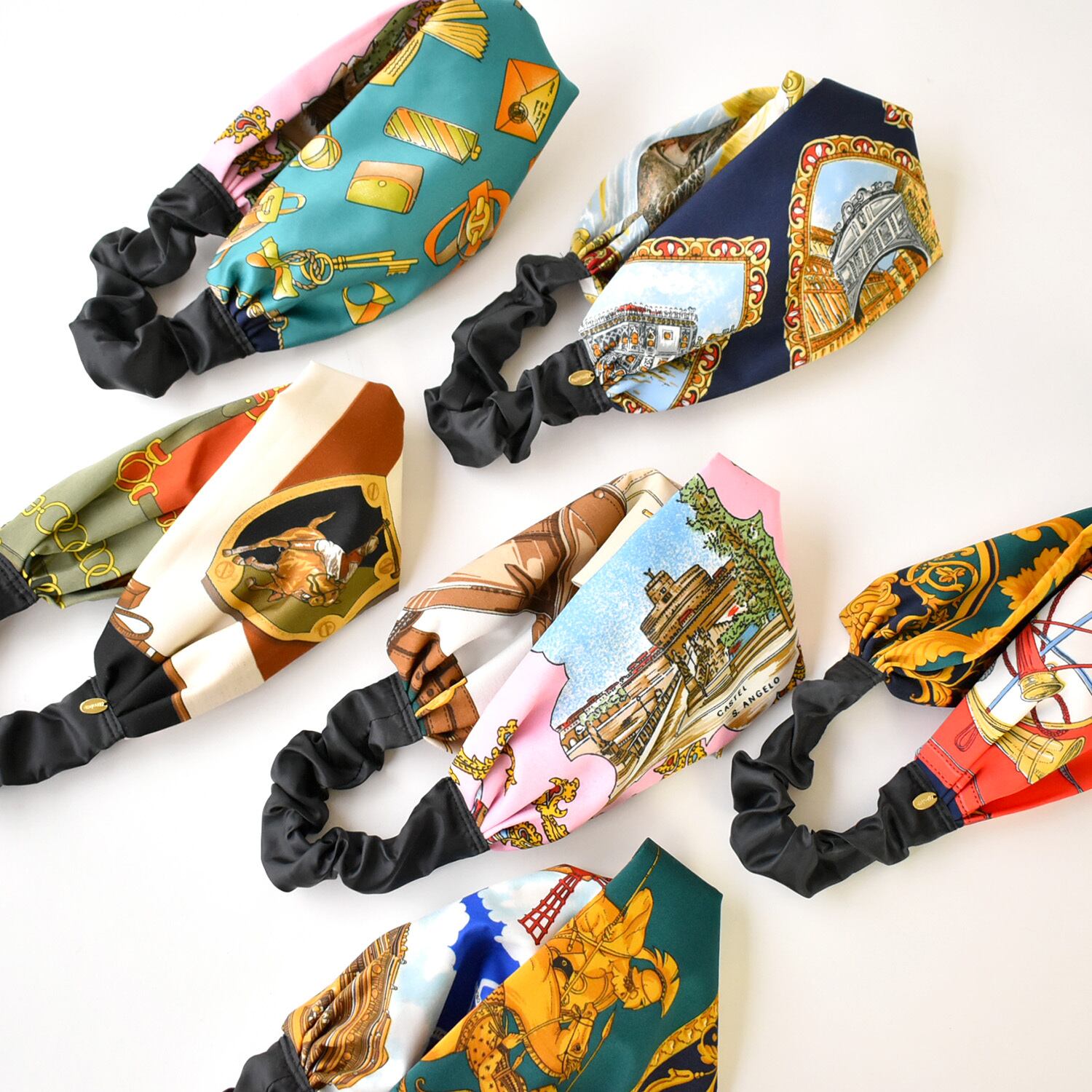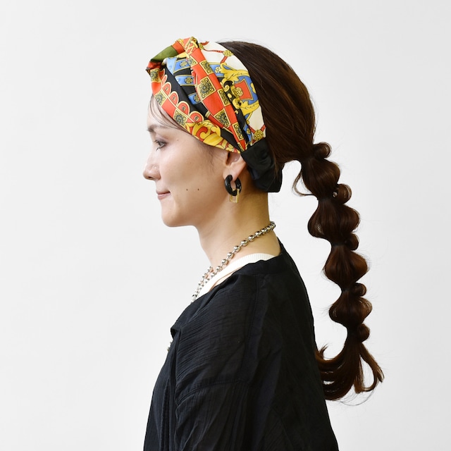 異なるスカーフを組み合わせてお作りしたヘアターバン。