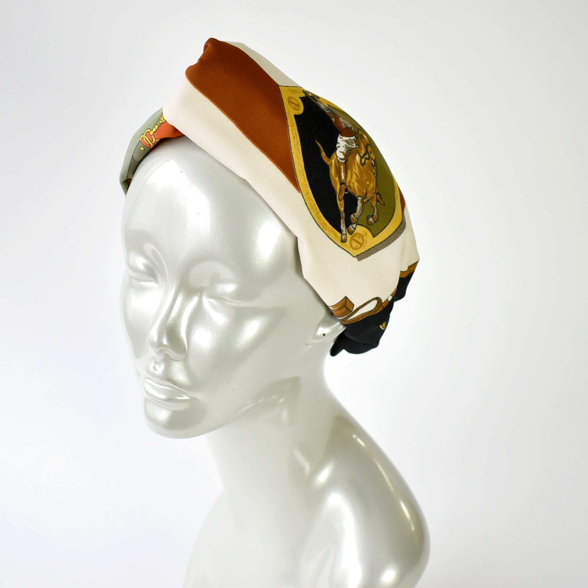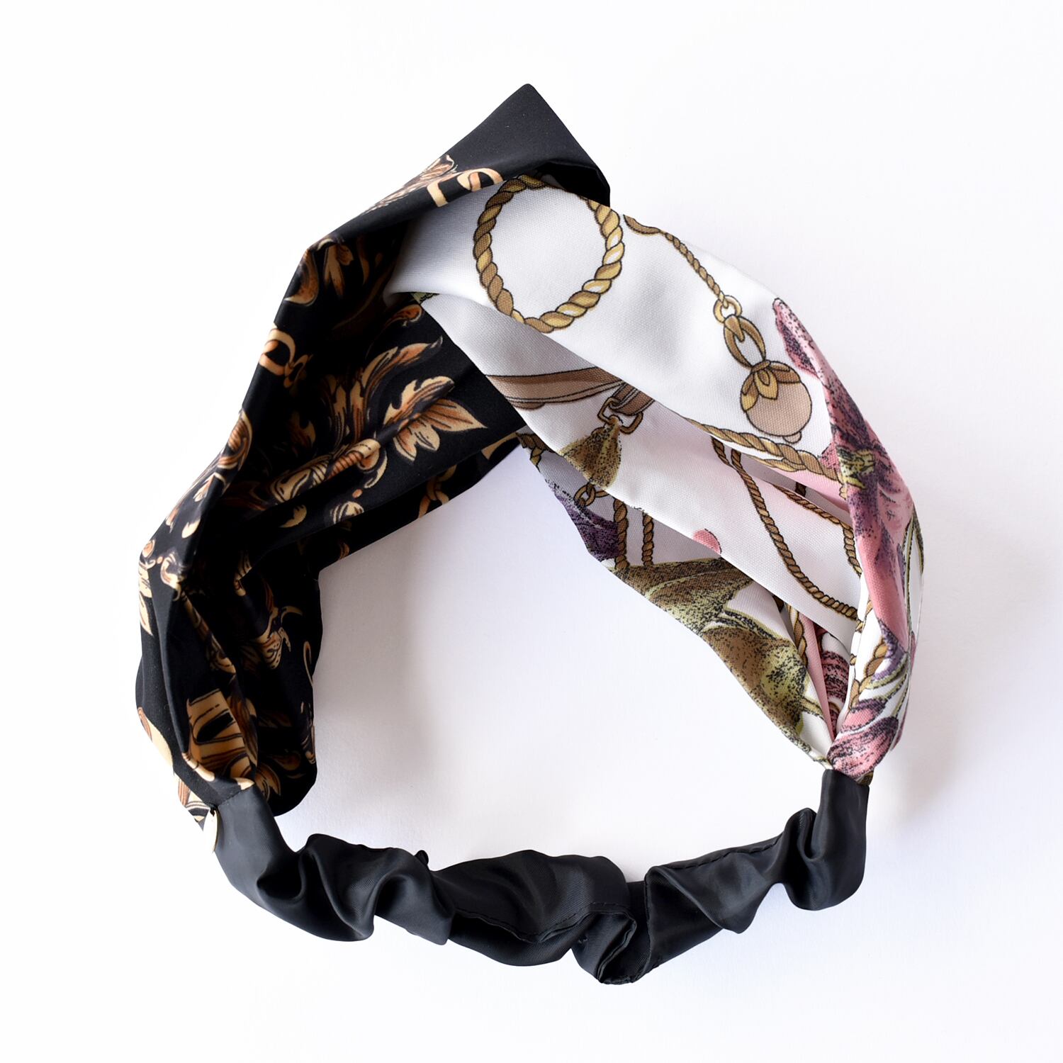 異なるスカーフを組み合わせてお作りしたヘアターバン。