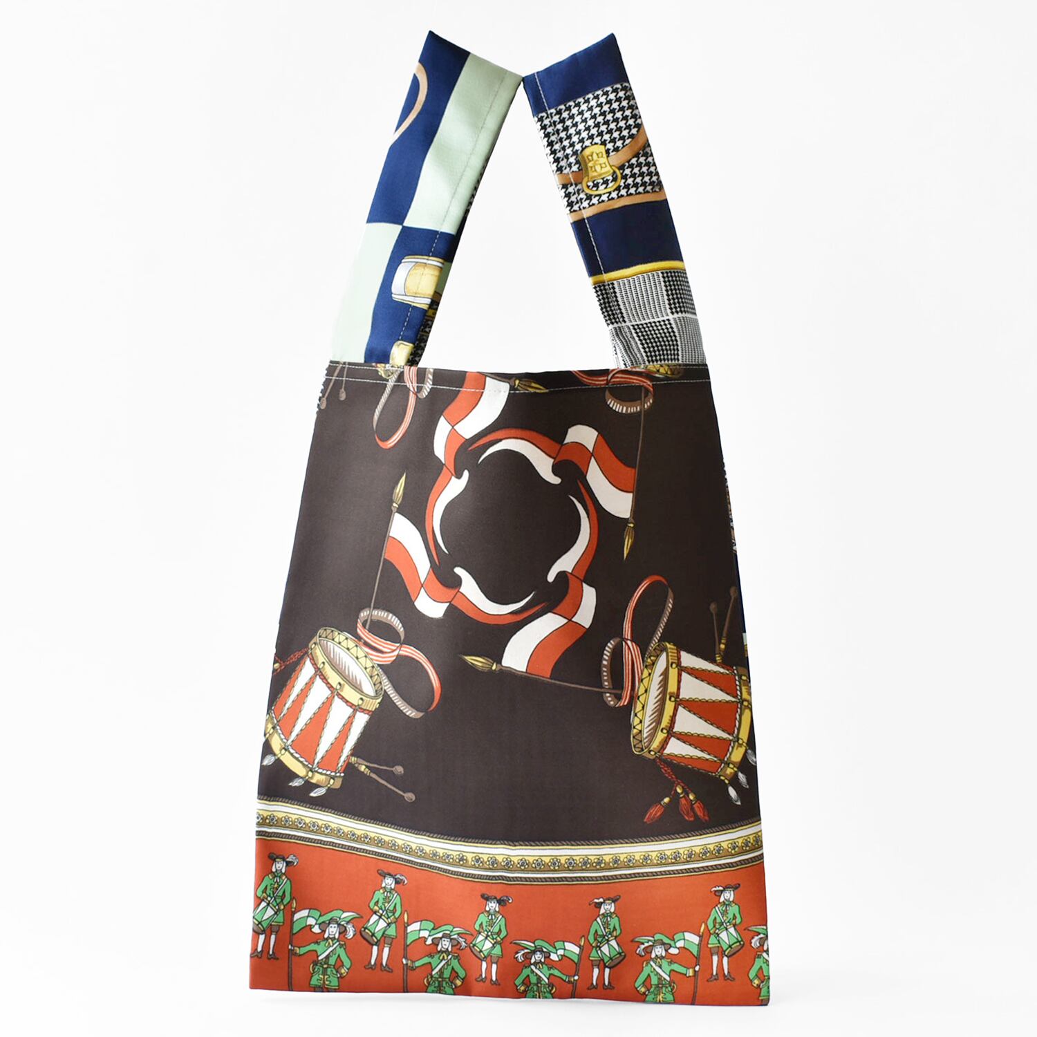 ヴィンテージスカーフが高級感たっぷりなマルシェバッグ。