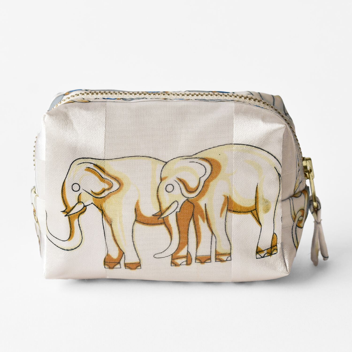ヴィンテージスカーフを使用した俵型ポーチ。