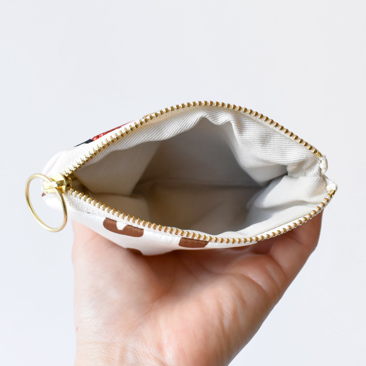 リップやミニ鏡、ヘアコームなどメイク直しセットなどを入れていつも持ち歩きたい手のひらサイズのフラットなポーチ。