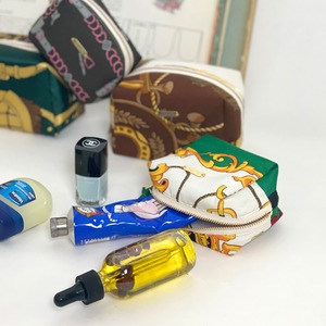 ヴィンテージスカーフを使用した俵型ポーチ。