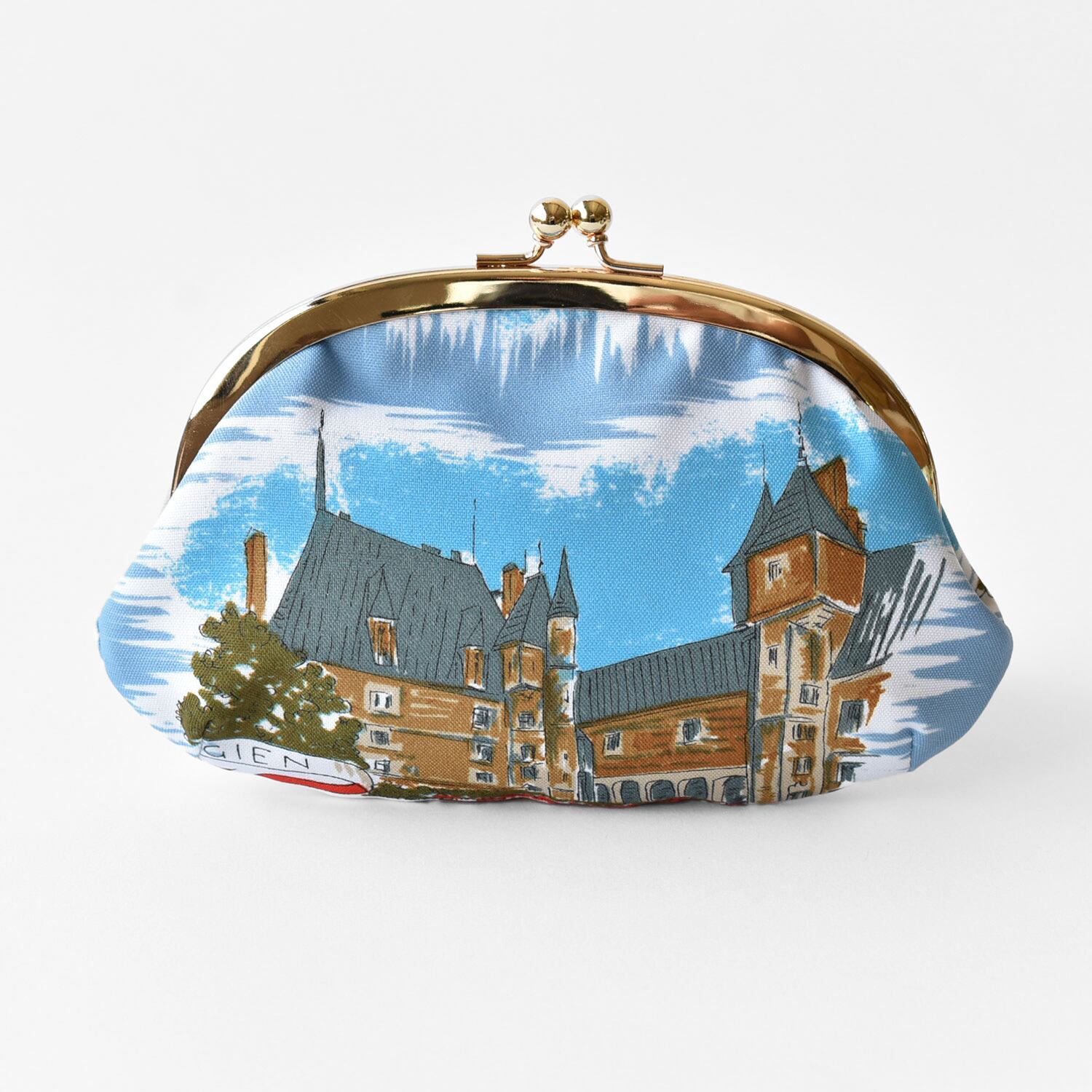 ヴィンテージスカーフをリメイクした、がま口ポーチ。