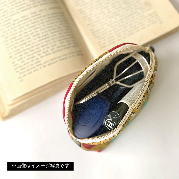 ファスナーがラウンド型に開く人気のポーチはアイテムの出し入れがしやすく、コンパクトでバッグの中でもかさばりません。