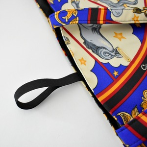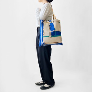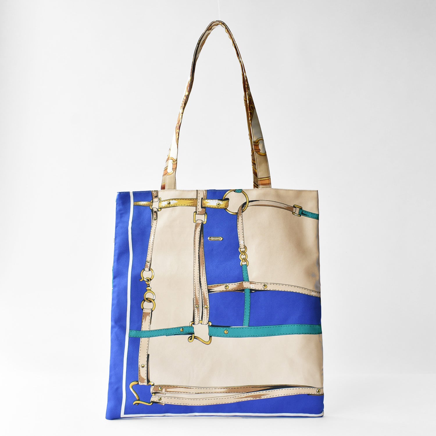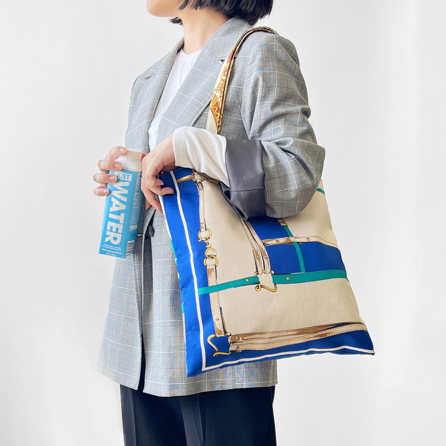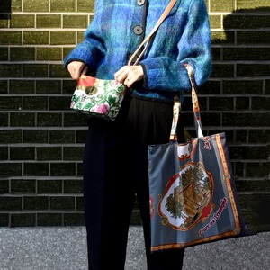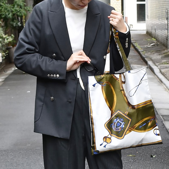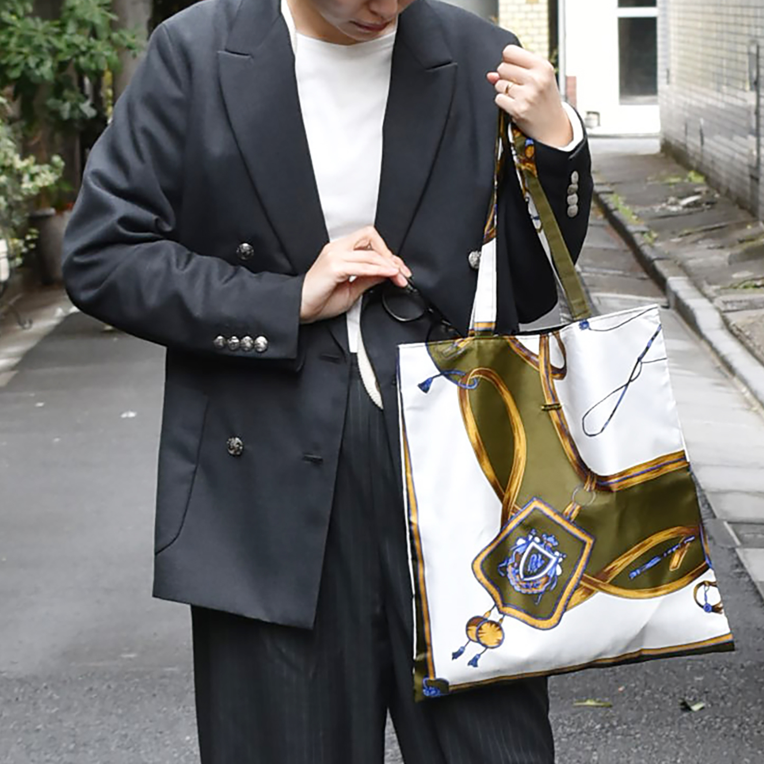 スカーフ裏に柔らかい芯地を合わせて折畳しやすいタイプのトートバッグとなります。