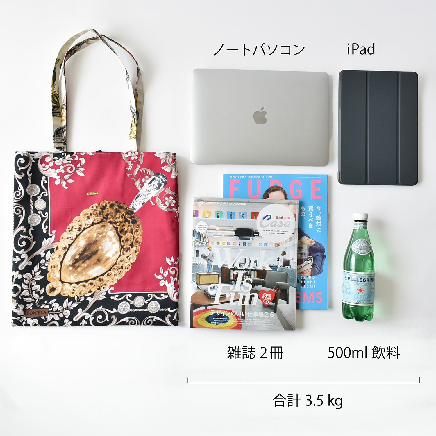 軽くて、たっぷり入るトートバッグはディリー使いにもオススメです。