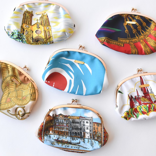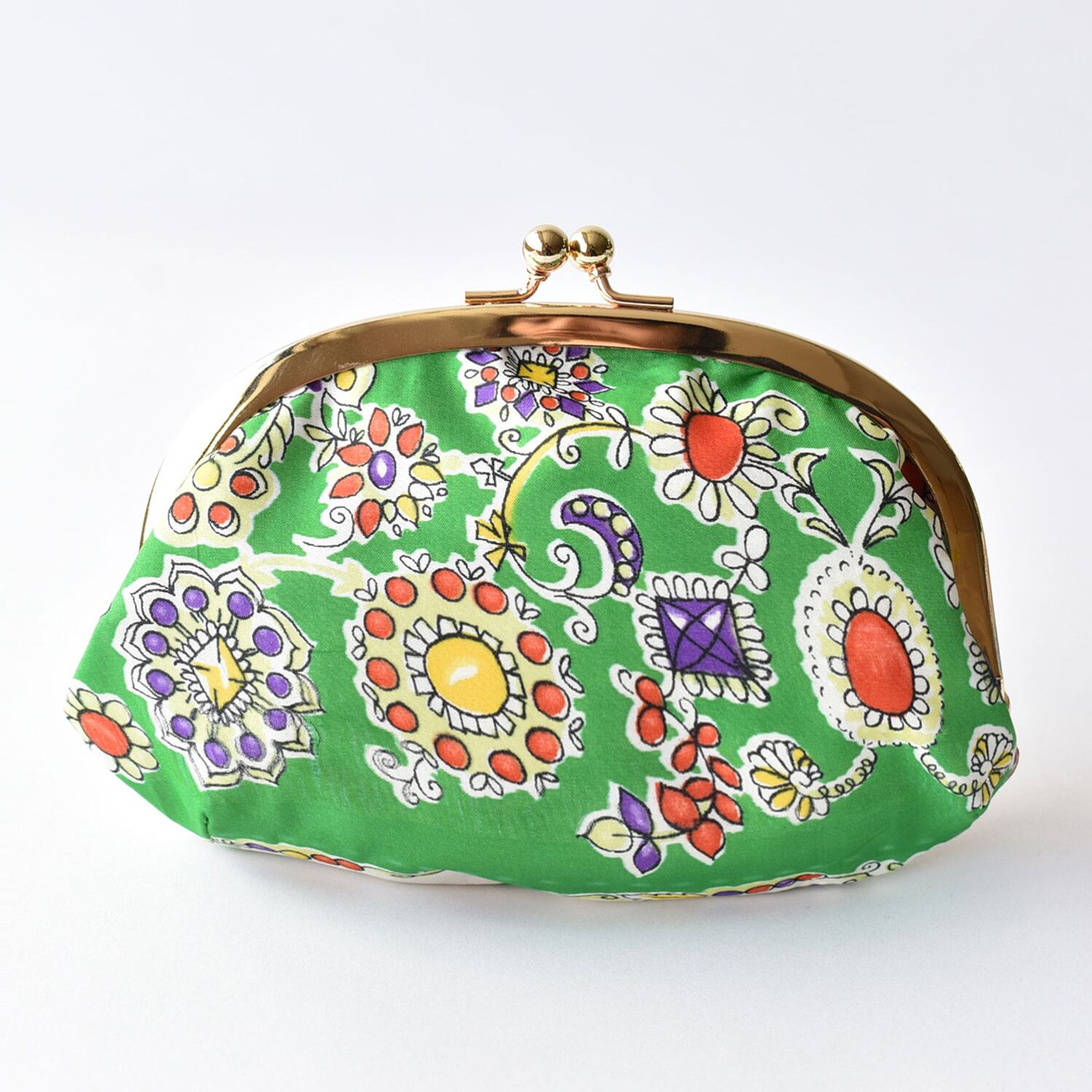 ヴィンテージスカーフをリメイクした、がま口ポーチ。
