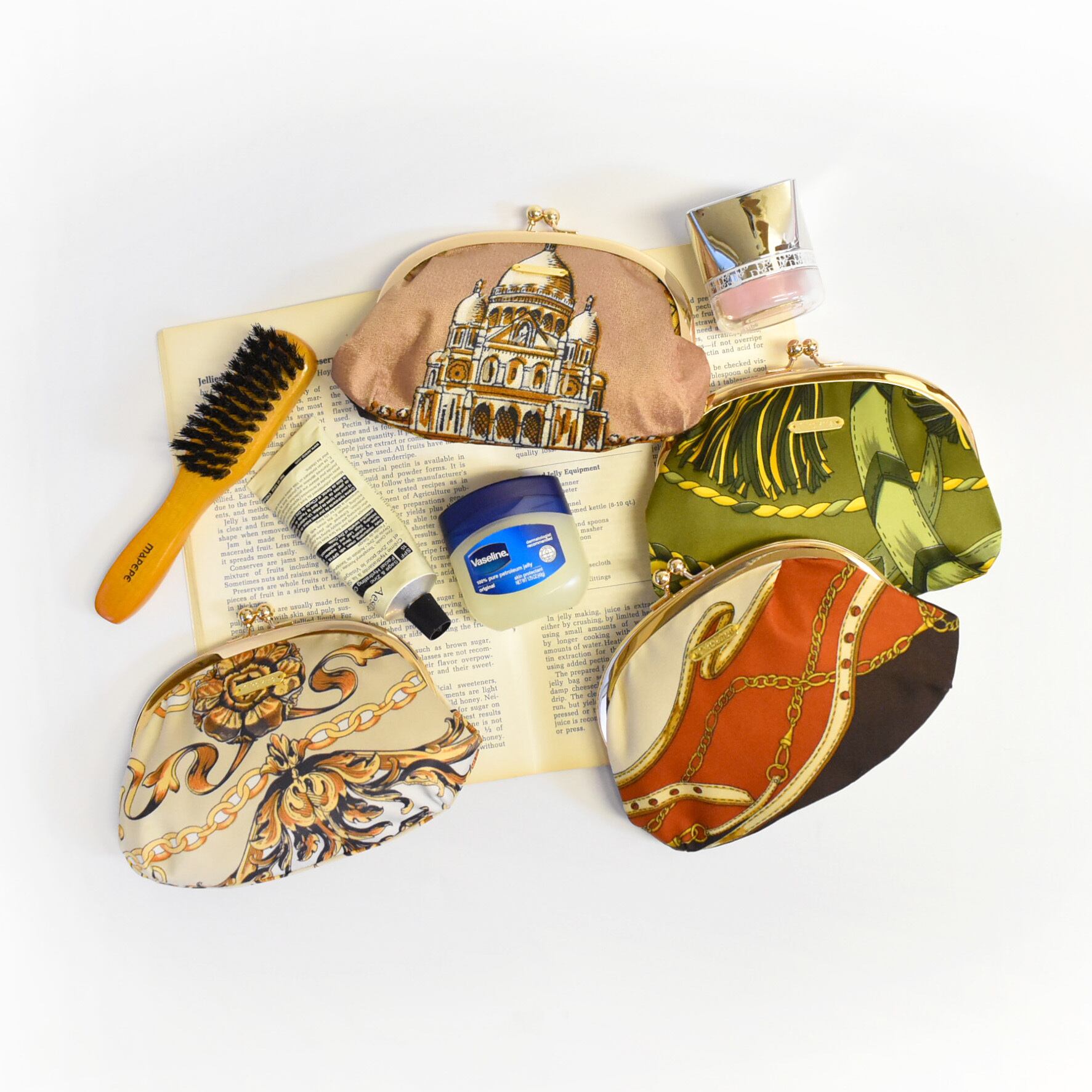 ヴィンテージスカーフをリメイクした、がま口ポーチ。