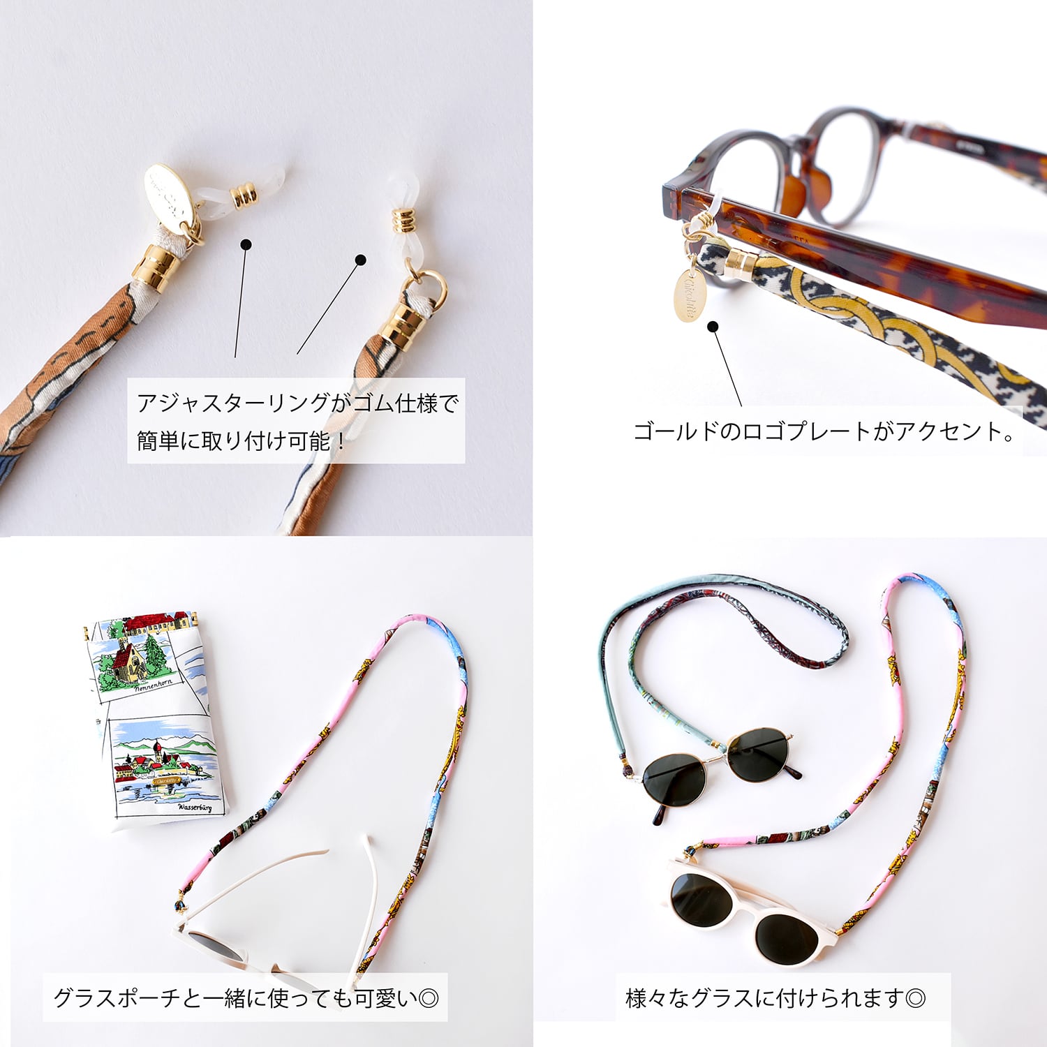 スカーフ素材でふんわりとした肌触り。日常使いしたくなるグラスコードです。