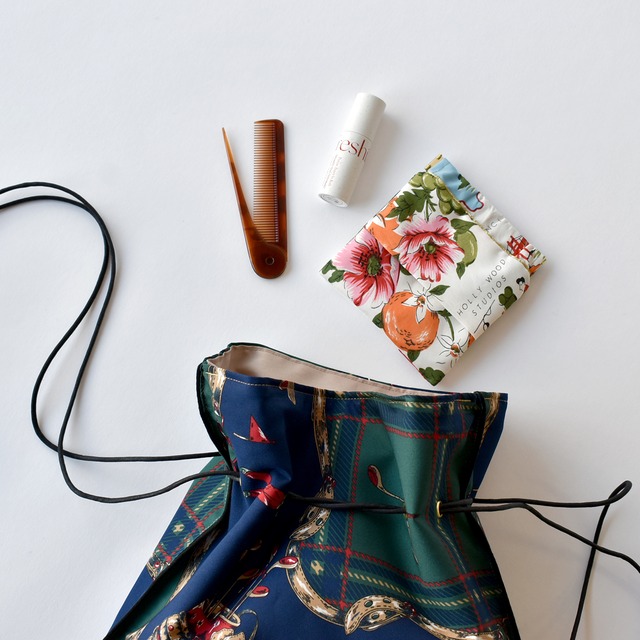 スカーフをリメイクしたティッシュポーチ。