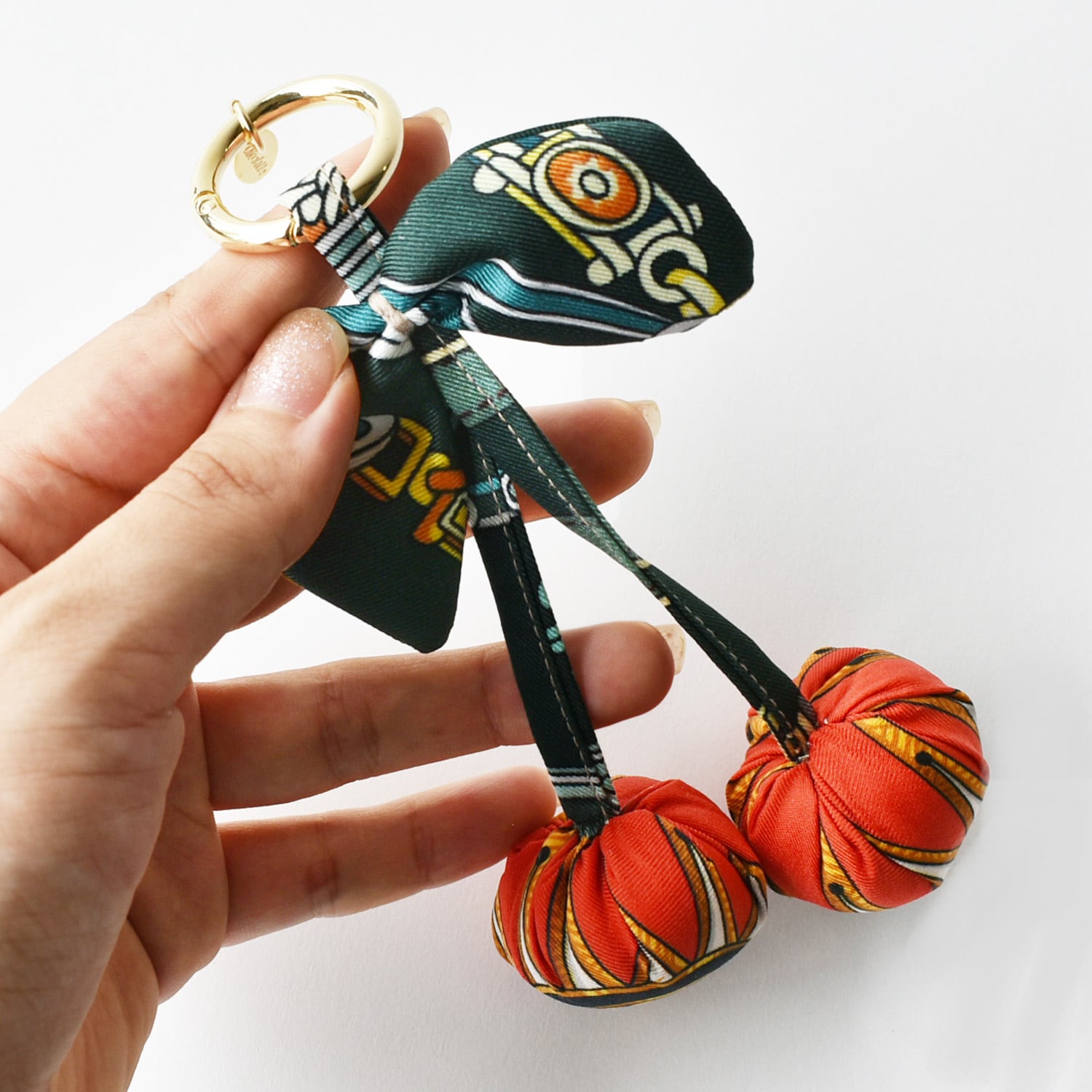 スカーフでリメイクしたCHERRY(さくらんぼ)チャーム。