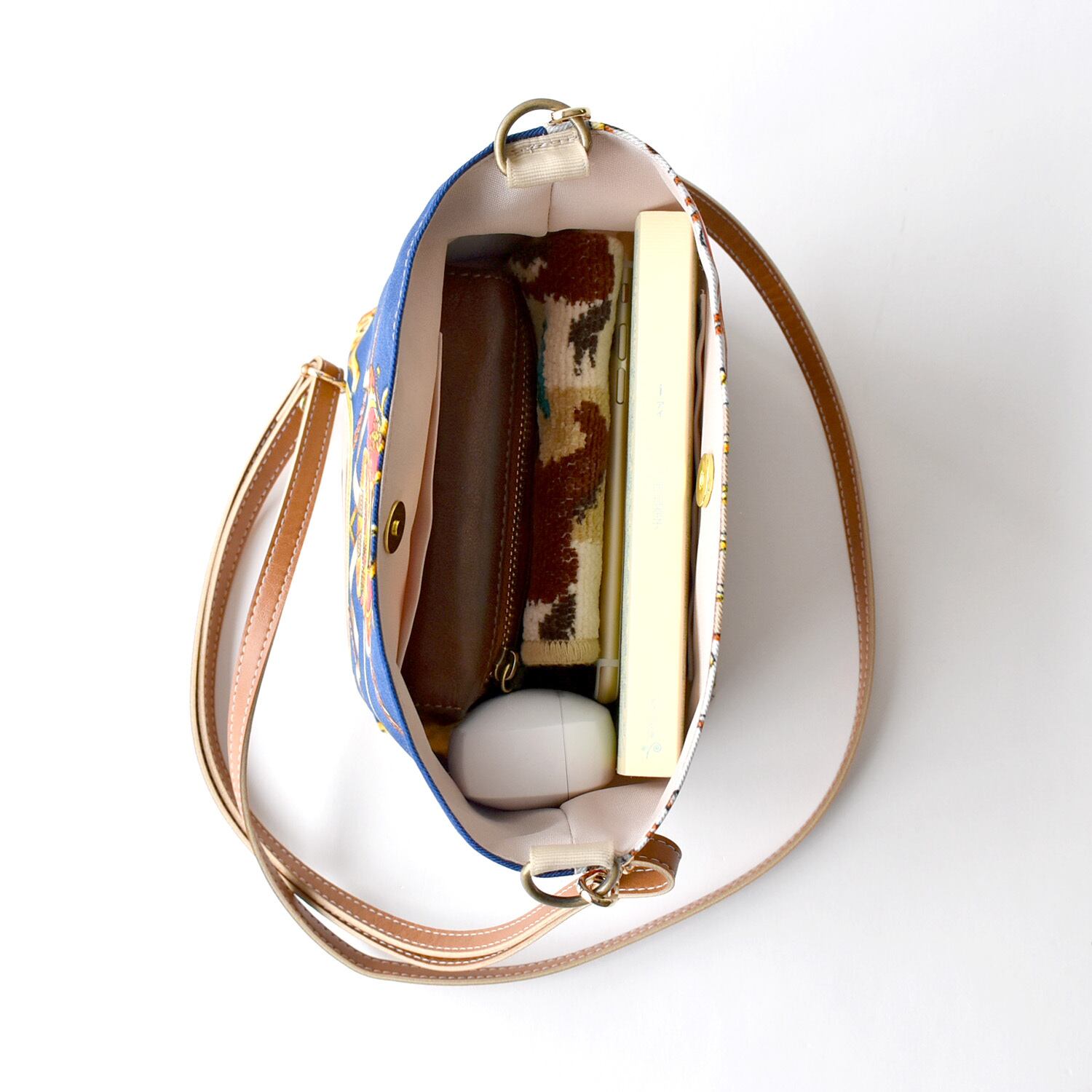 ミニサイズのお財布とちょっとしたポーチなどを入れてお出掛けするのにちょうど良いサイズ感。