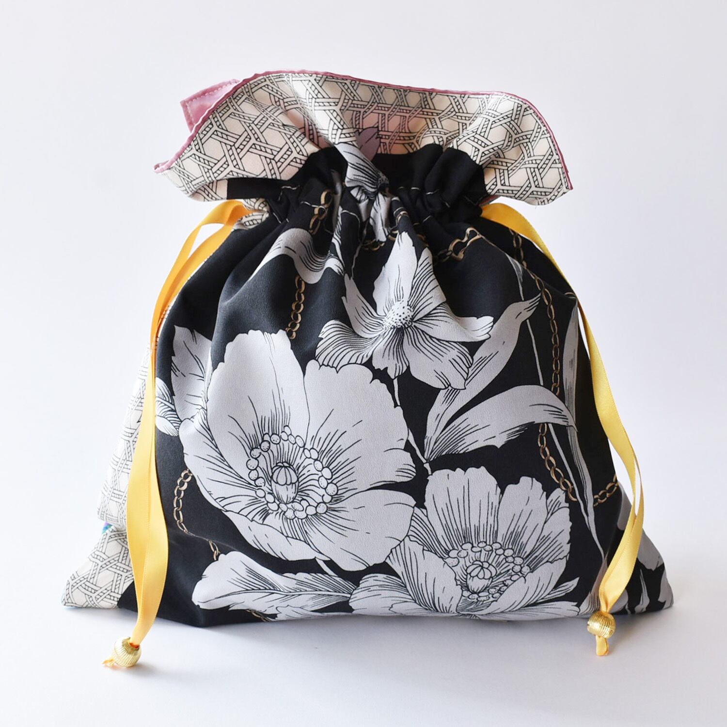 スカーフの切替が楽しい一点もの巾着。