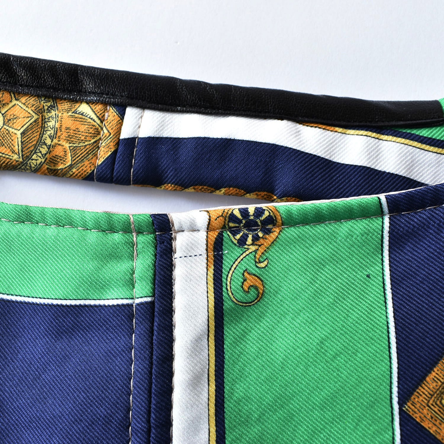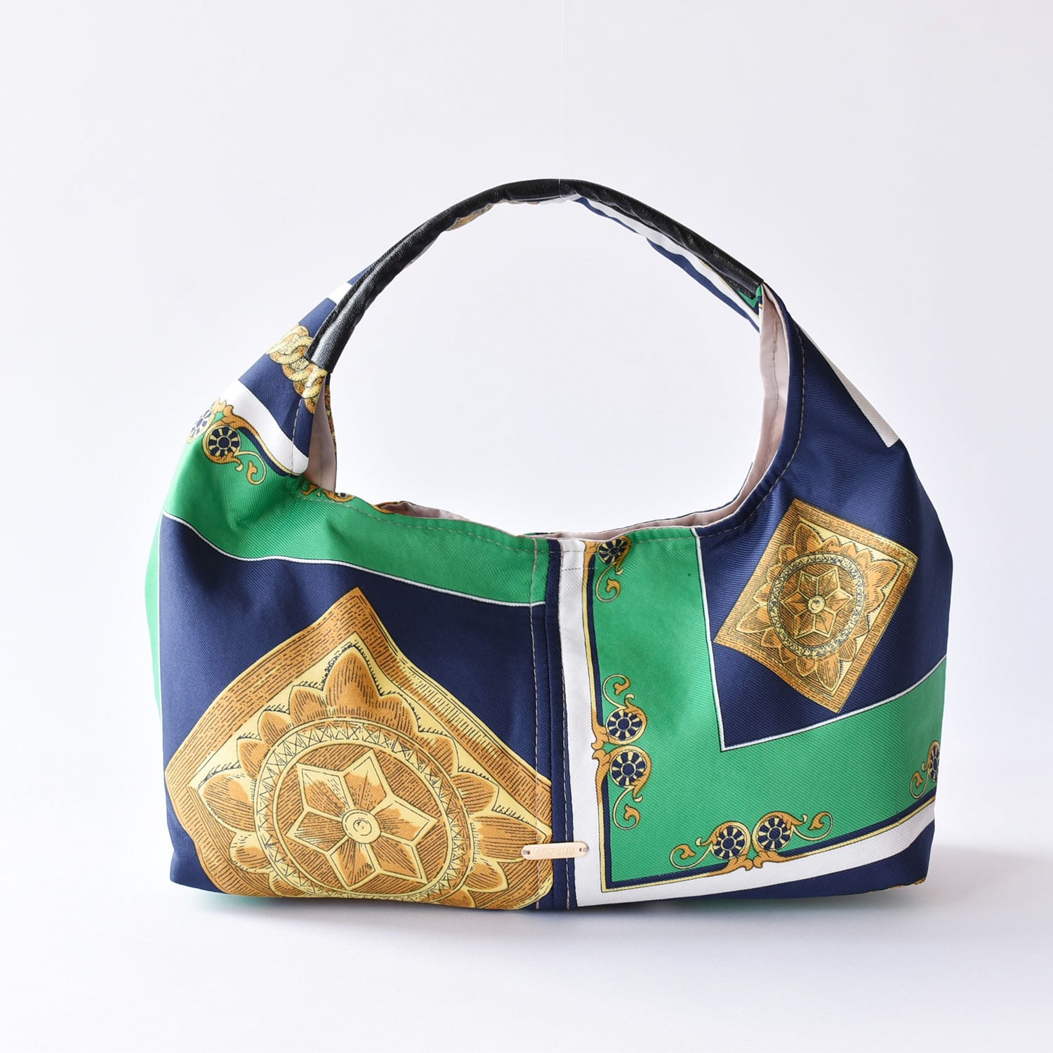 スカーフ素材で柔らかく、持ち手部分は合皮でパイピングされているので持ち心地◎