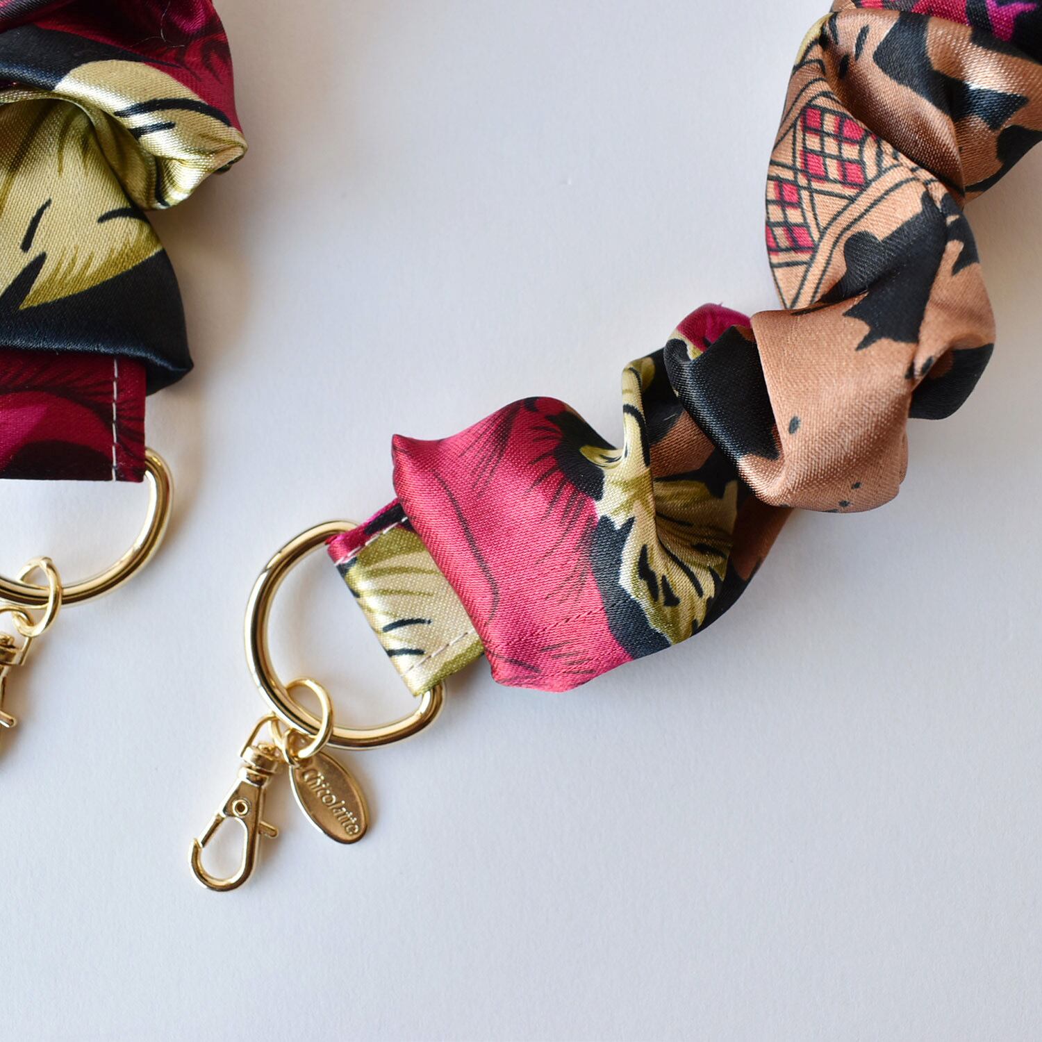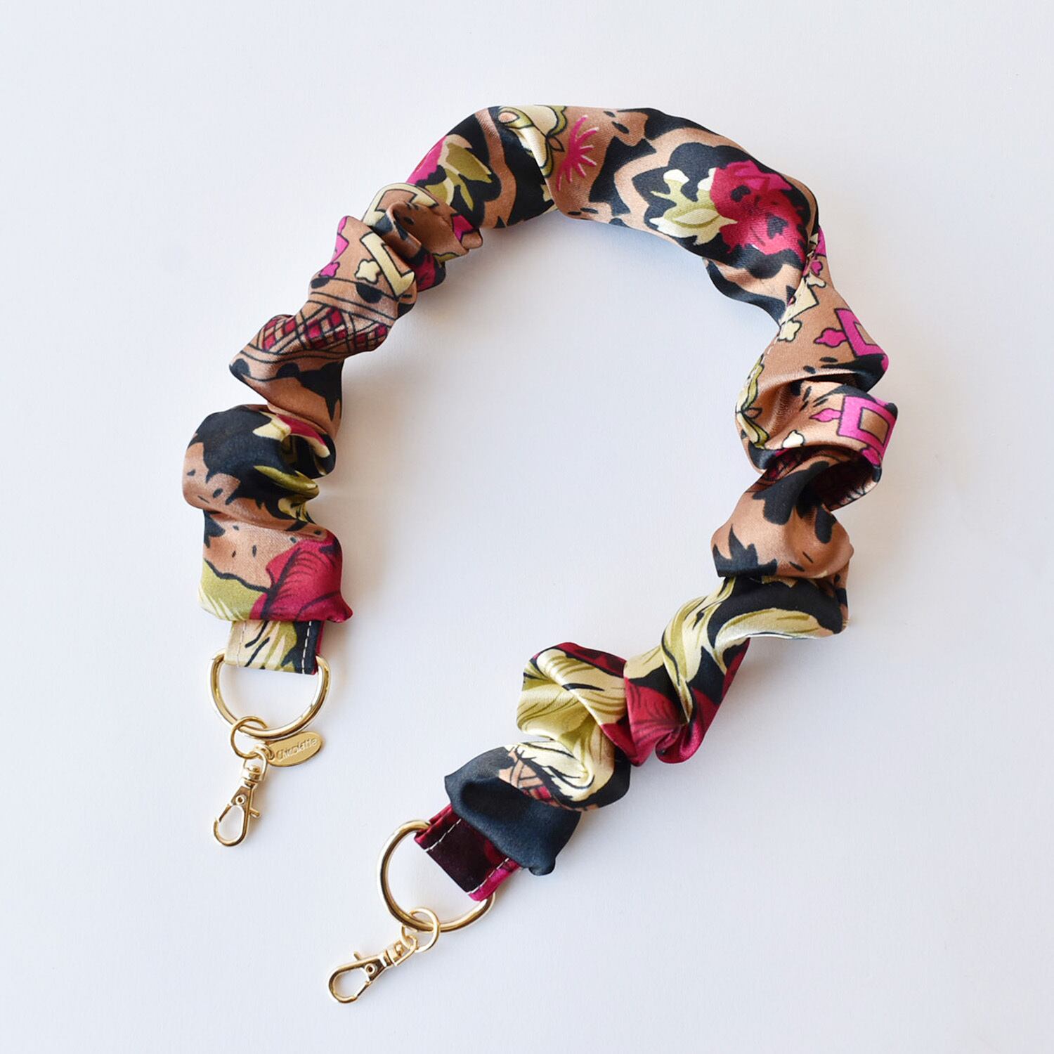 スカーフの光沢感が映える、大人可愛いスマホストラップ。