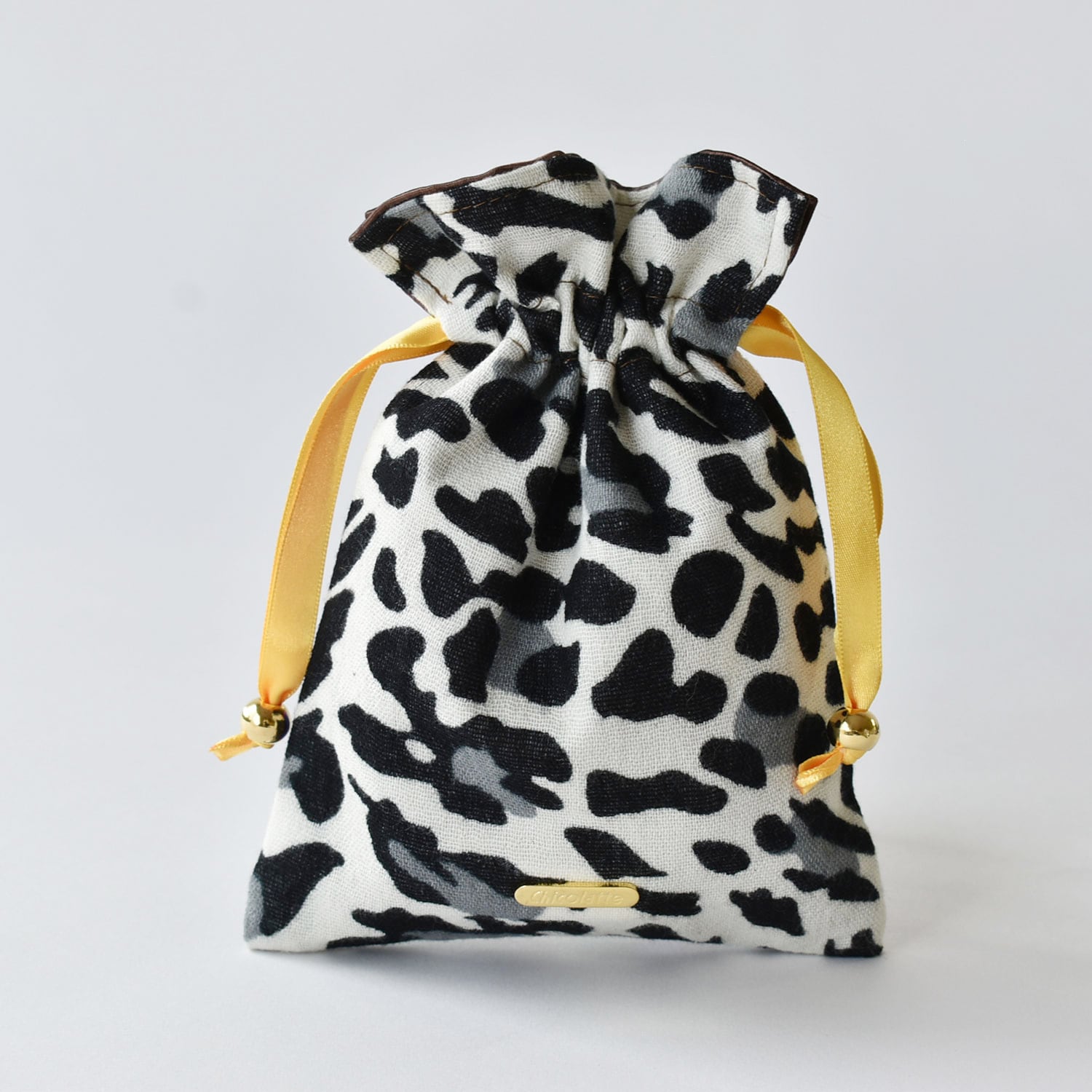 表生地は2種類のスカーフを使用しており、スカーフの切替が楽しい一点もの巾着。