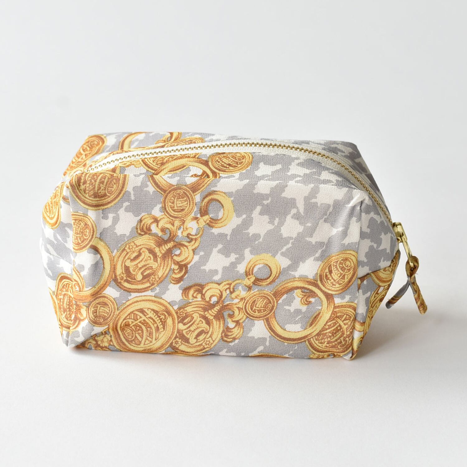 スカーフをリメイクしたマチが大きめで軽量な万能ポーチ。