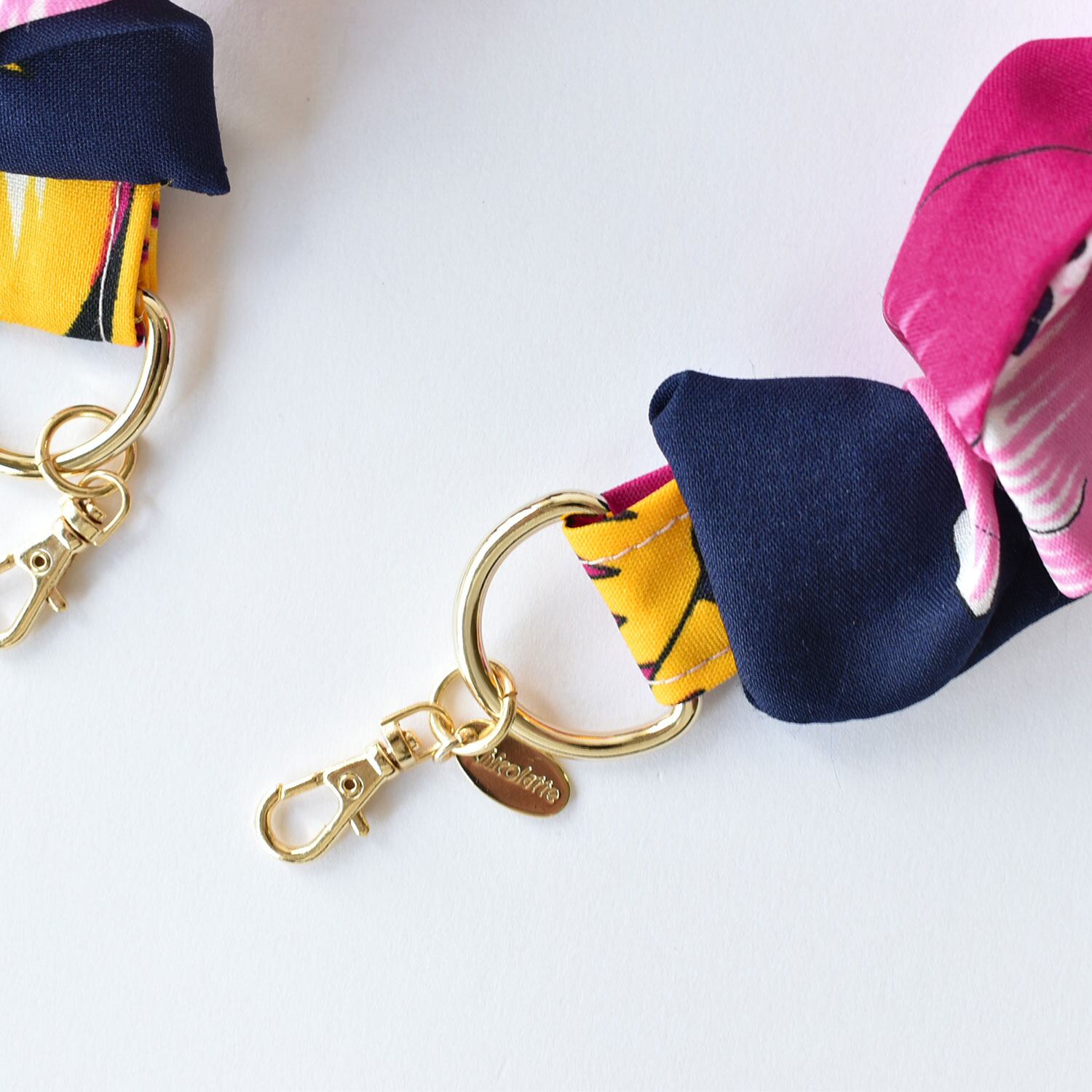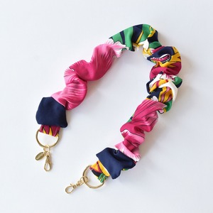 スカーフの光沢感が映える、大人可愛いスマホストラップ。