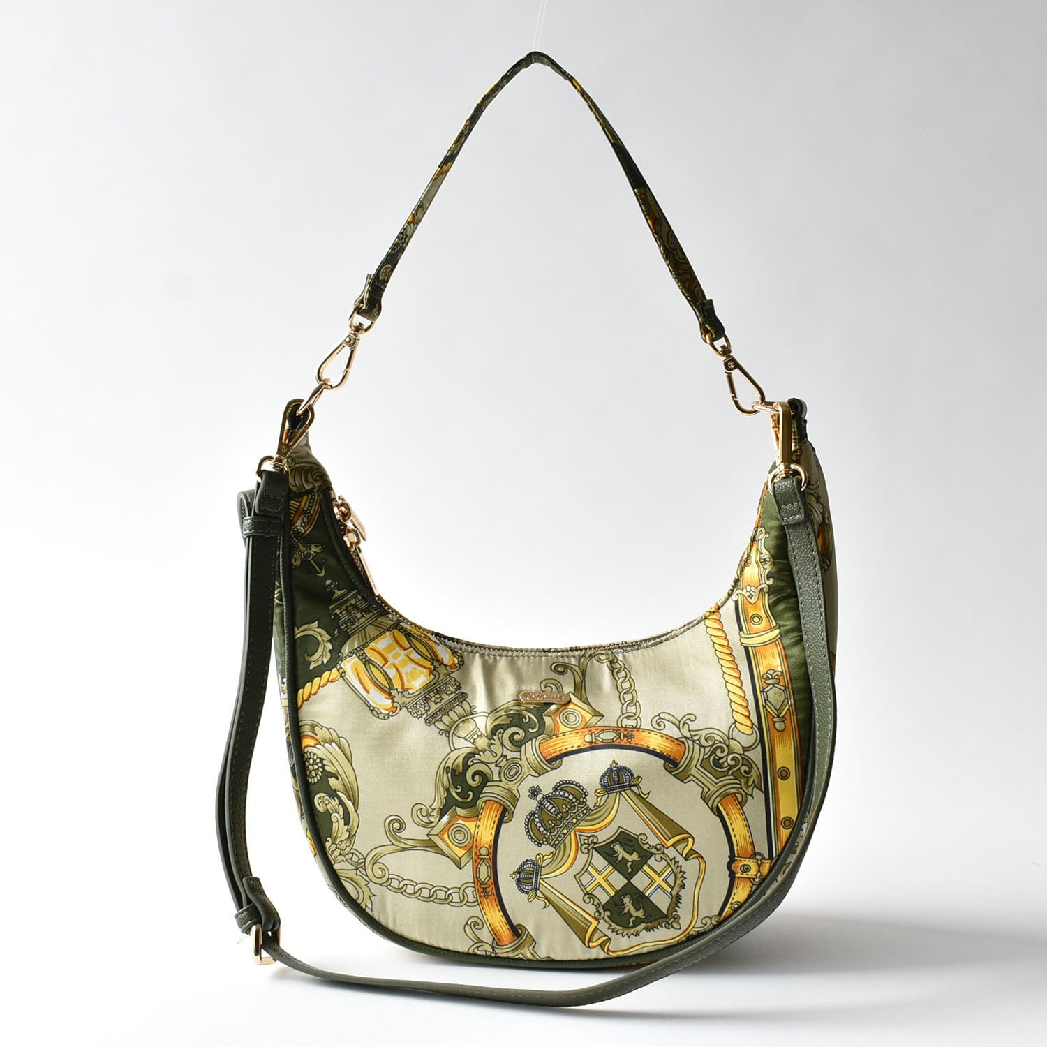 ほどよい収納力を備えた使い勝手のいい三日月型のボディに、2種類のストラップでどんなシーンでも使いやすいラウンドショルダー。