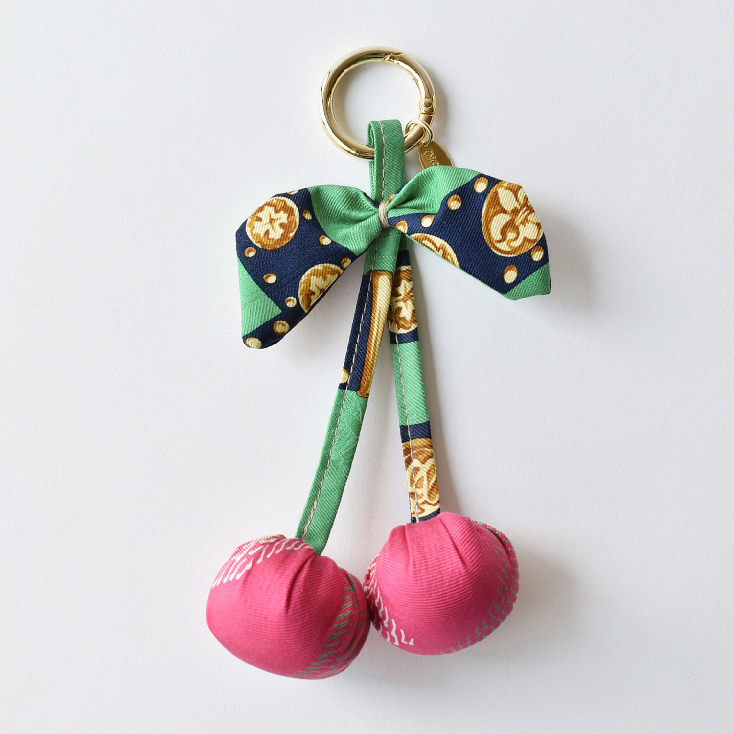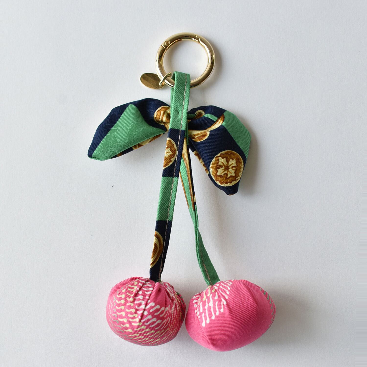 スカーフでリメイクした CHERRY(さくらんぼ)チャーム。