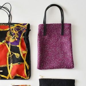手持ちトート、ショルダーバッグ、巾着風バッグの3WAYで使えるバッグ。