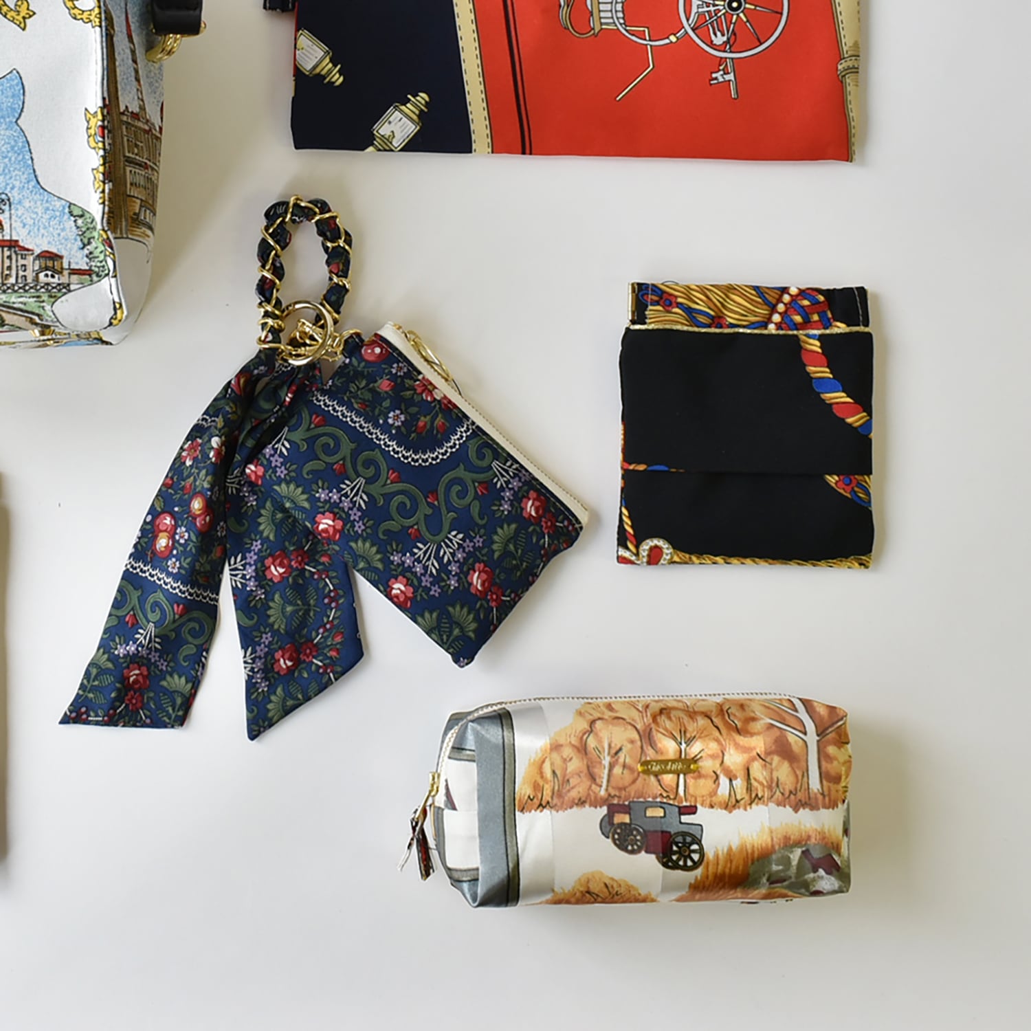 バッグに取り付け可能なミニポーチ付きキーチェーン。