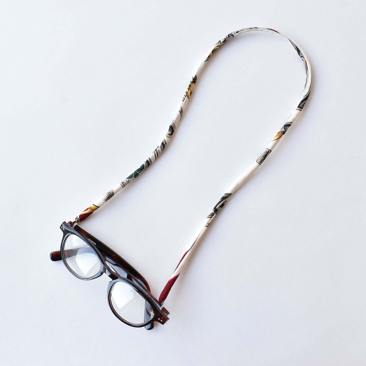 スカーフ素材でふんわりとした肌触り。日常使いしたくなるグラスコードです。