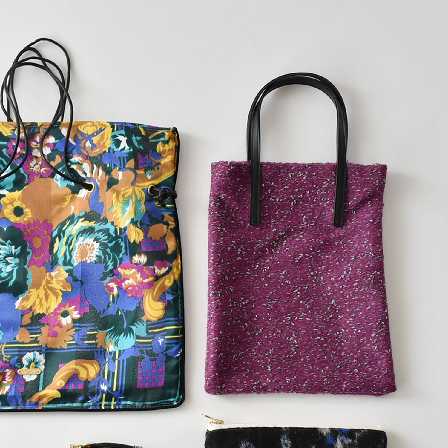 手持ちトート、ショルダーバッグ、巾着風バッグの3WAYで使えるバッグ。