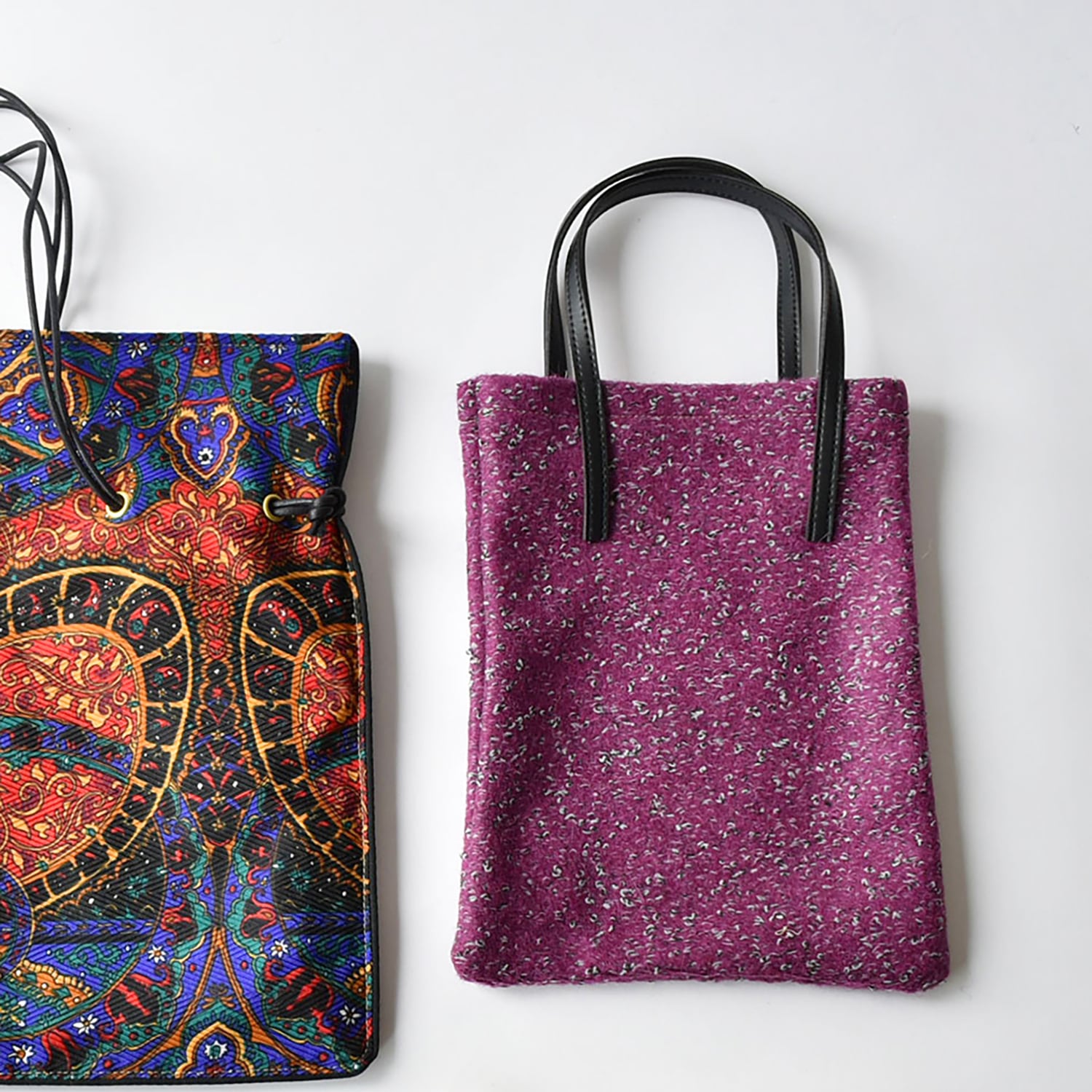 手持ちトート、ショルダーバッグ、巾着風バッグの3WAYで使えるバッグ。