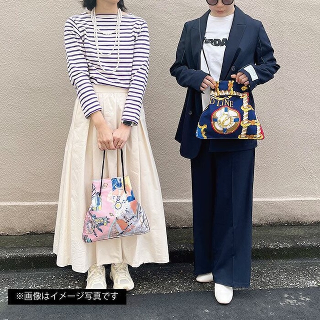 手持ちトート、ショルダーバッグ、巾着風バッグの3WAYで使えるバッグ。